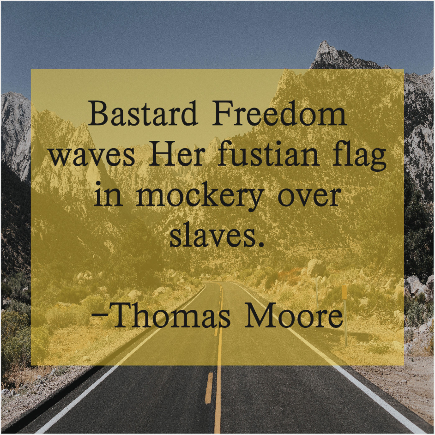 Thomas Moore Thomas Moore – Bastard Freedom waves Her fustian… April 2, 2019 admin “Bastard Freedom waves Her fustian flag in mockery over slaves.”-Thomas Moore