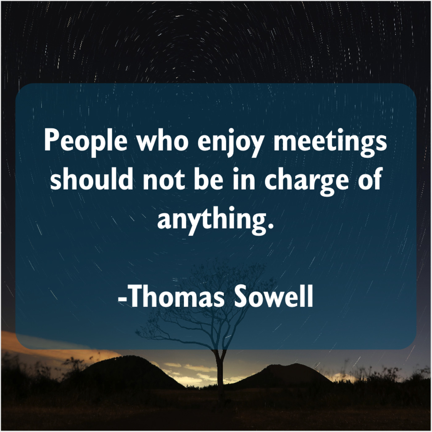 Thomas Sowell Thomas Sowell – People who enjoy meetings should… June 27, 2019 admin “People who enjoy meetings should not be in charge of anything.”-Thomas Sowell