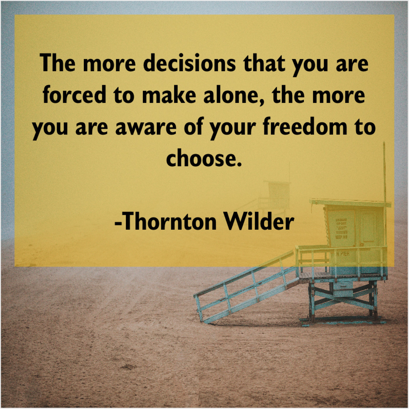 Thornton Wilder Thornton Wilder – The more decisions that you… June 20, 2019 admin “The more decisions that you are forced to make alone, the more you are aware of your freedom to choose.”-Thornton Wilder
