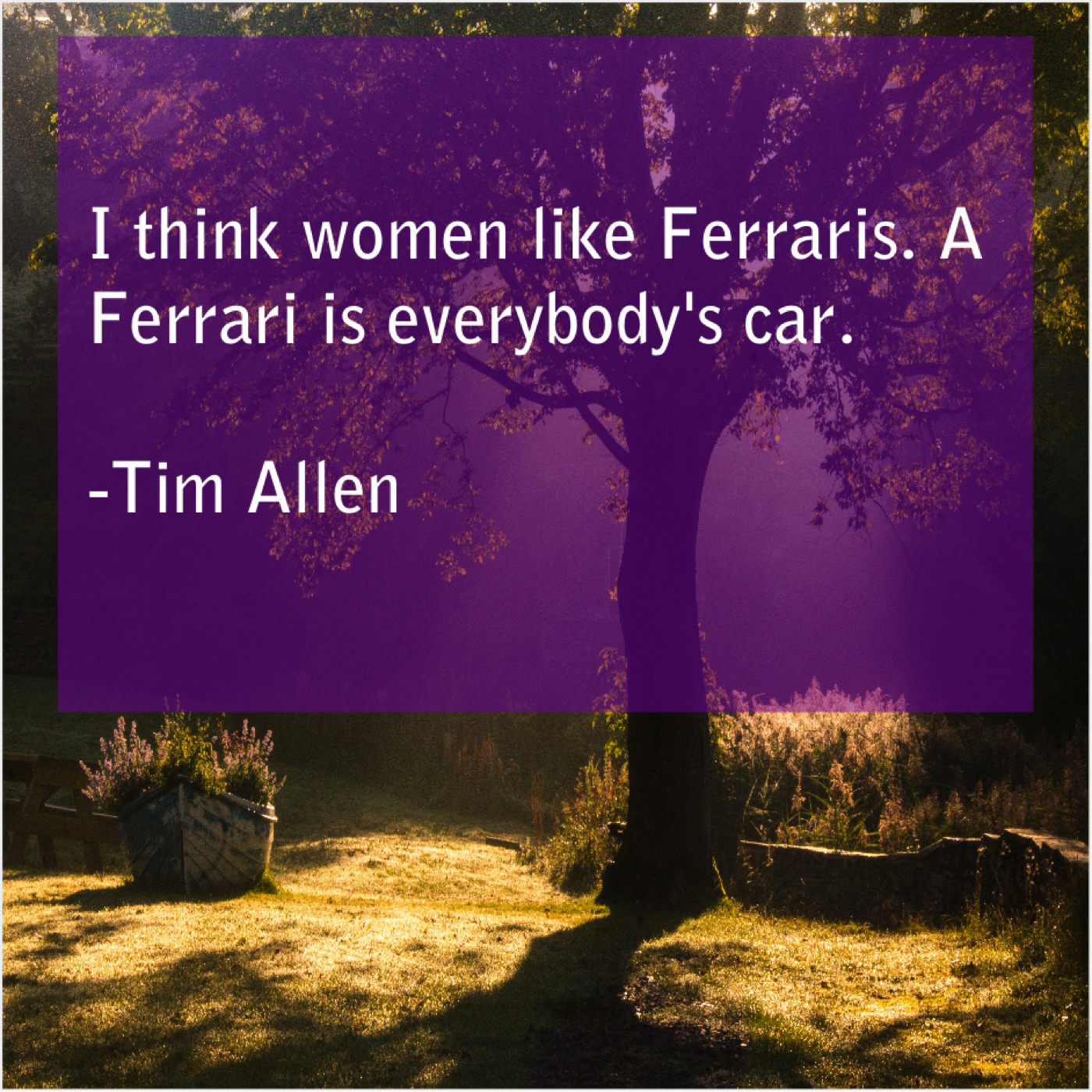 Tim Allen Tim Allen – I think women like Ferraris… October 5, 2019 admin “I think women like Ferraris. A Ferrari is everybody’s car.”-Tim Allen