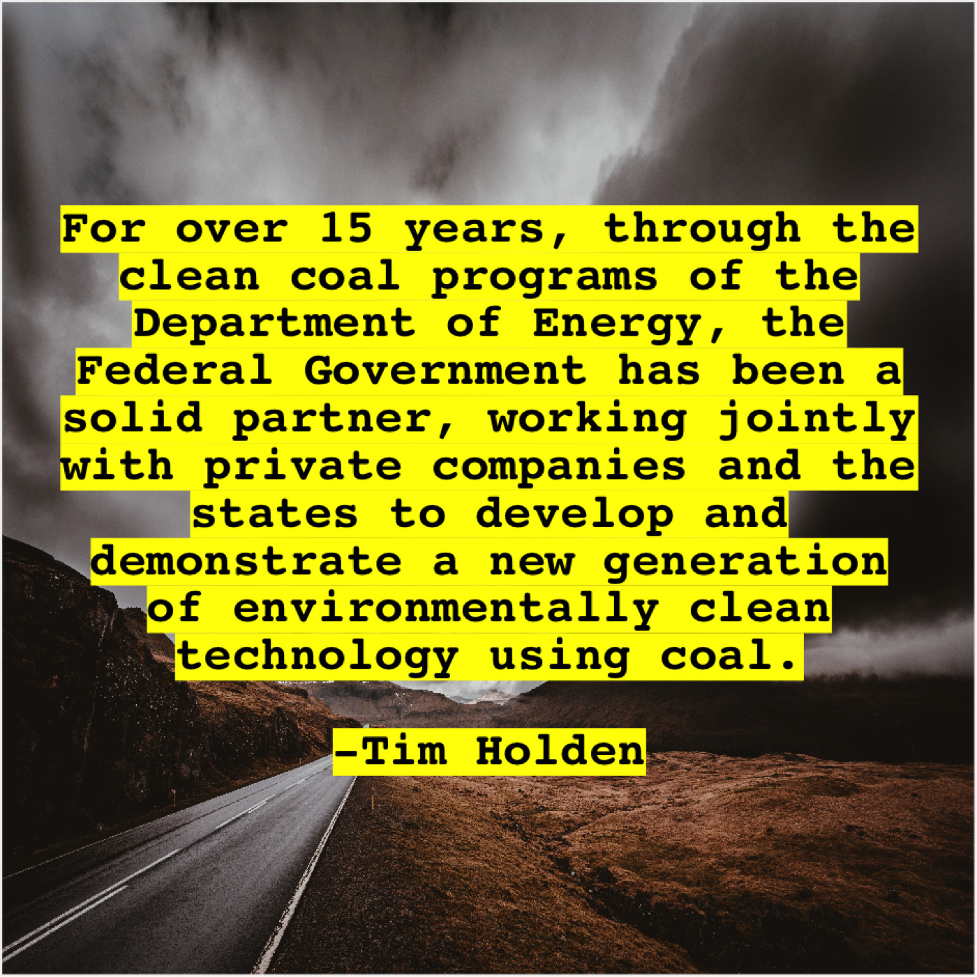 “For over 15 years, through the clean coal programs of the Department of Energy, the Federal Government has been a solid partner, working jointly with private companies and the states to develop and demonstrate a new generation of environmentally clean technology using coal.”