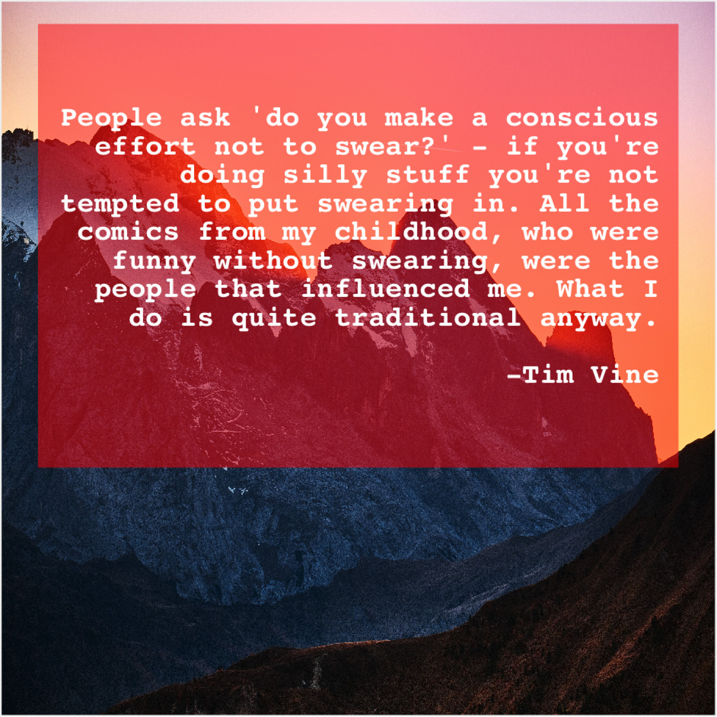 “People ask ‘do you make a conscious effort not to swear?’ – if you’re doing silly stuff you’re not tempted to put swearing in. All the comics from my childhood, who were funny without swearing, were the people that influenced me. What I do is quite traditional anyway.”