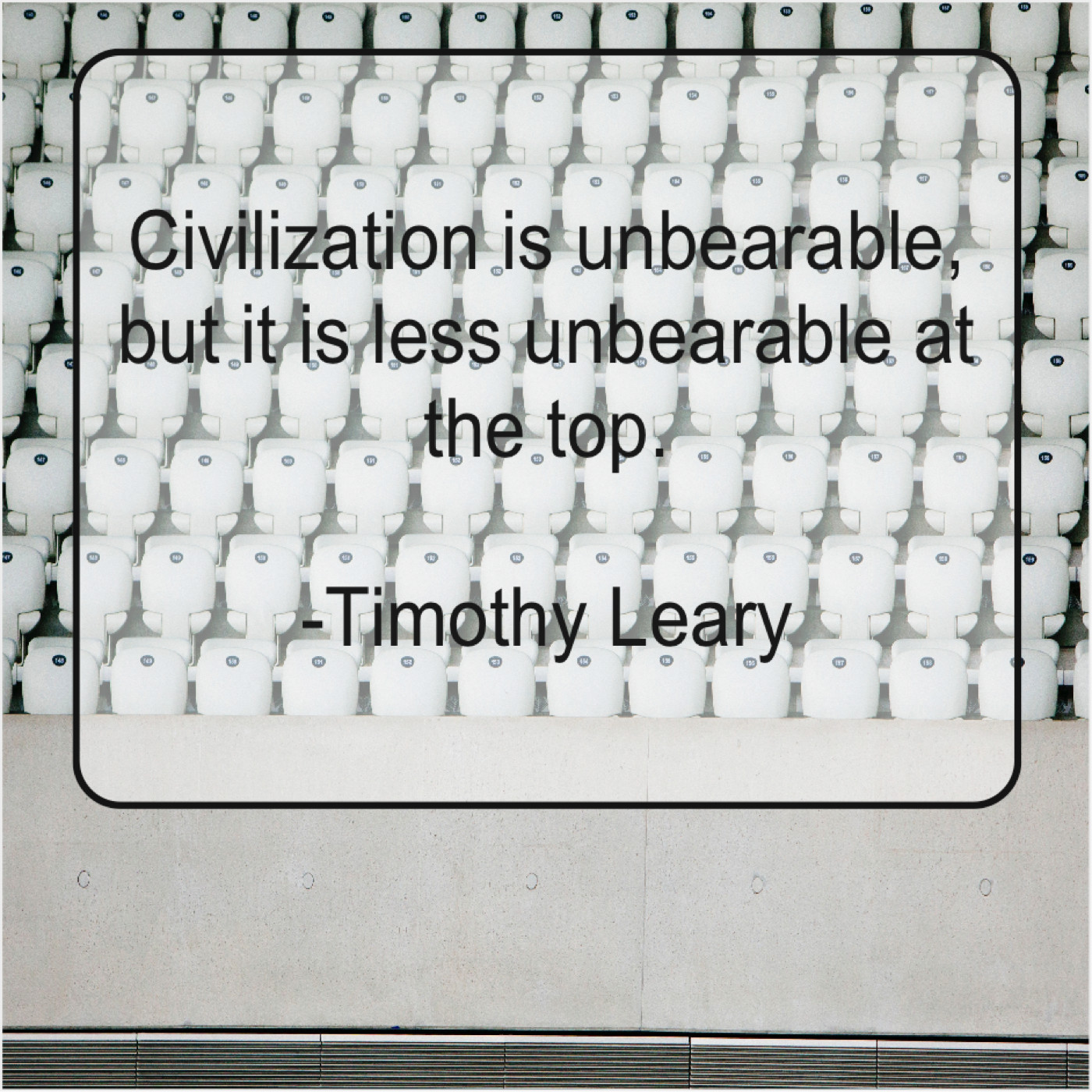 Timothy Leary Timothy Leary – Civilization is unbearable, but it… October 31, 2018 admin “Civilization is unbearable, but it is less unbearable at the top.”-Timothy Leary
