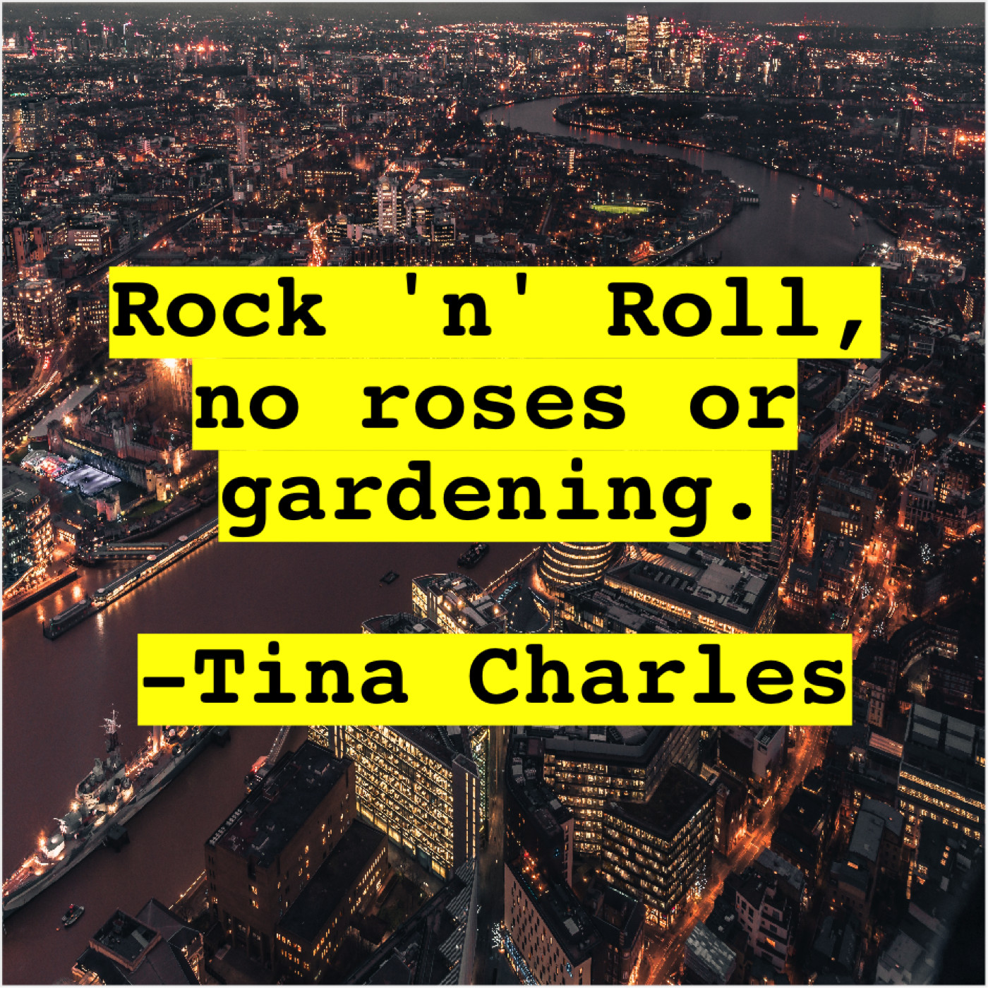 Tina Charles Tina Charles – Rock ‘n’ Roll, no roses… February 1, 2019 admin “Rock ‘n’ Roll, no roses or gardening.”-Tina Charles