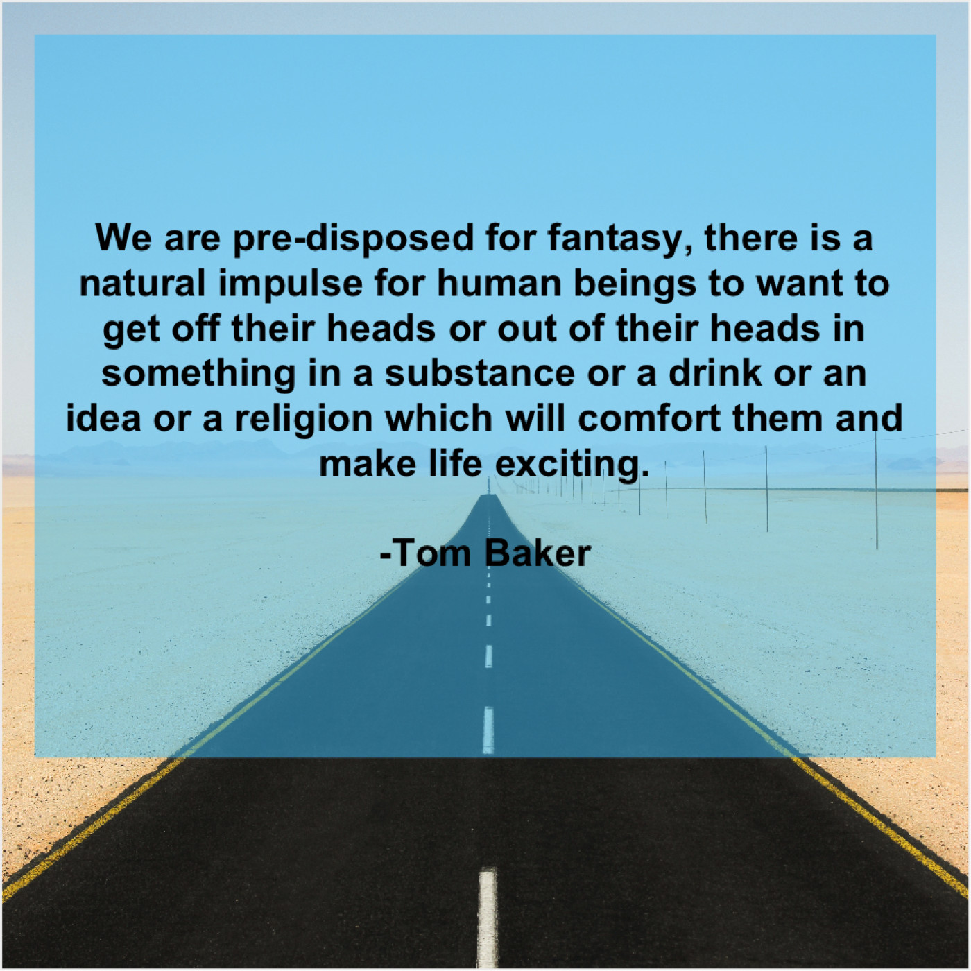 “We are pre-disposed for fantasy, there is a natural impulse for human beings to want to get off their heads or out of their heads in something in a substance or a drink or an idea or a religion which will comfort them and make life exciting.”