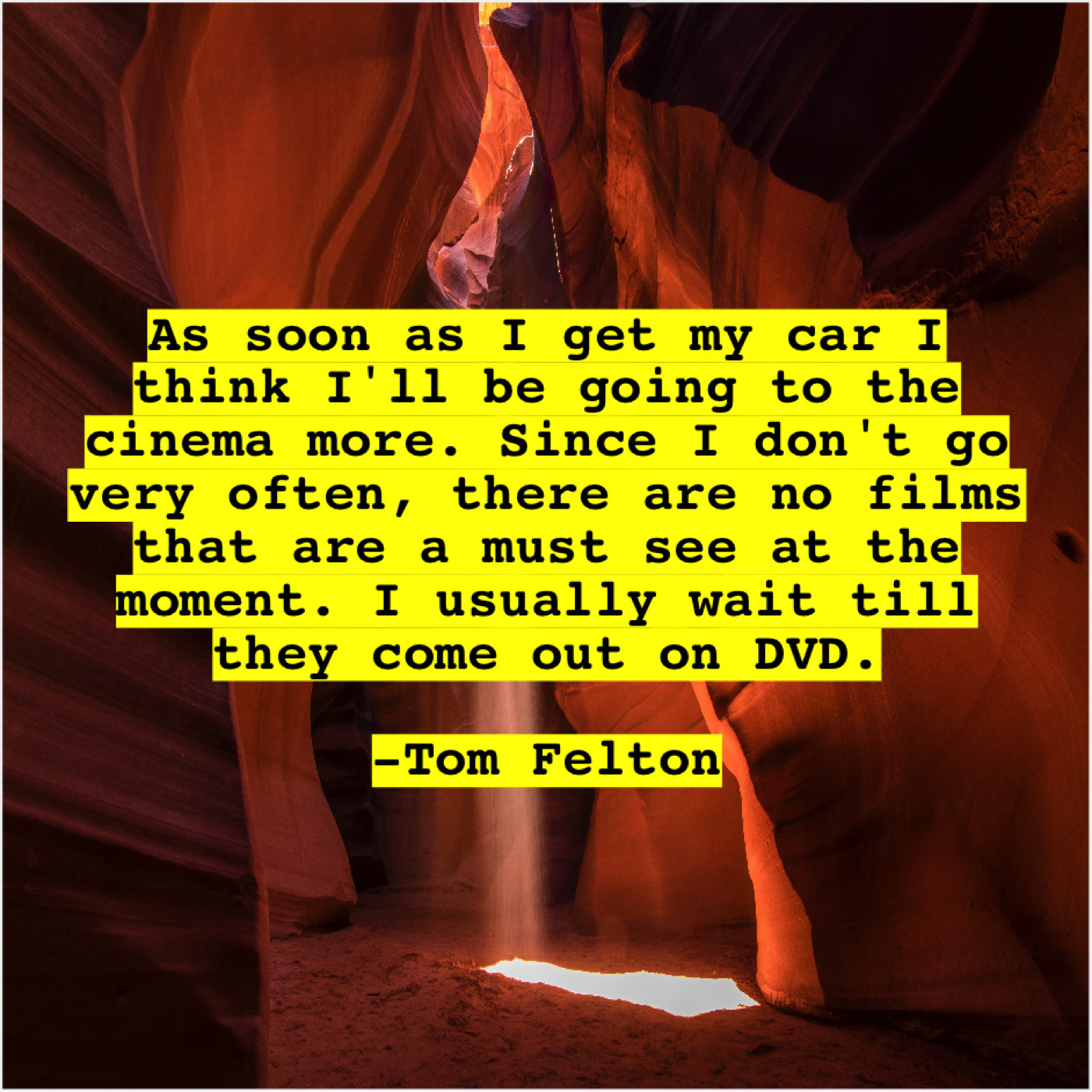Tom Felton Tom Felton – As soon as I get… September 4, 2019 admin “As soon as I get my car I think I’ll be going to the cinema more. Since I don’t go very often, there are no films that are a must see at the moment. I usually wait till they come out on DVD.”-Tom Felton