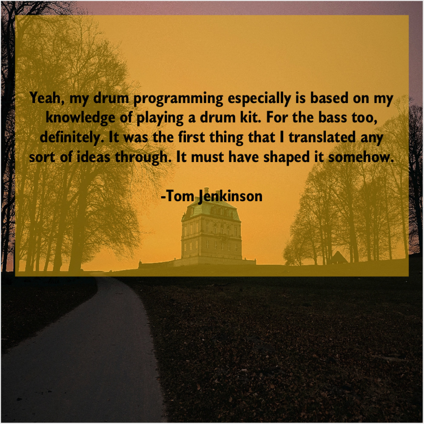 Tom Jenkinson Tom Jenkinson – Yeah, my drum programming especially… September 23, 2019 admin “Yeah, my drum programming especially is based on my knowledge of playing a drum kit. For the bass too, definitely. It was the first thing that I translated any sort of ideas through. It must have shaped it somehow.”-Tom Jenkinson