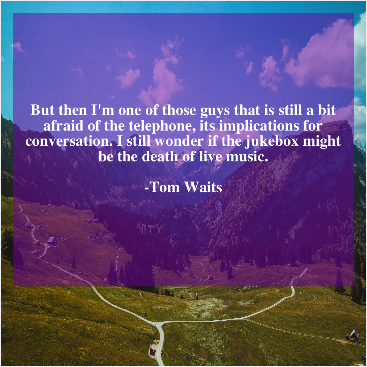 Tom Waits Tom Waits – But then I’m one of… February 28, 2019 admin “But then I’m one of those guys that is still a bit afraid of the telephone, its implications for conversation. I still wonder if the jukebox might be the death of live music.”-Tom Waits