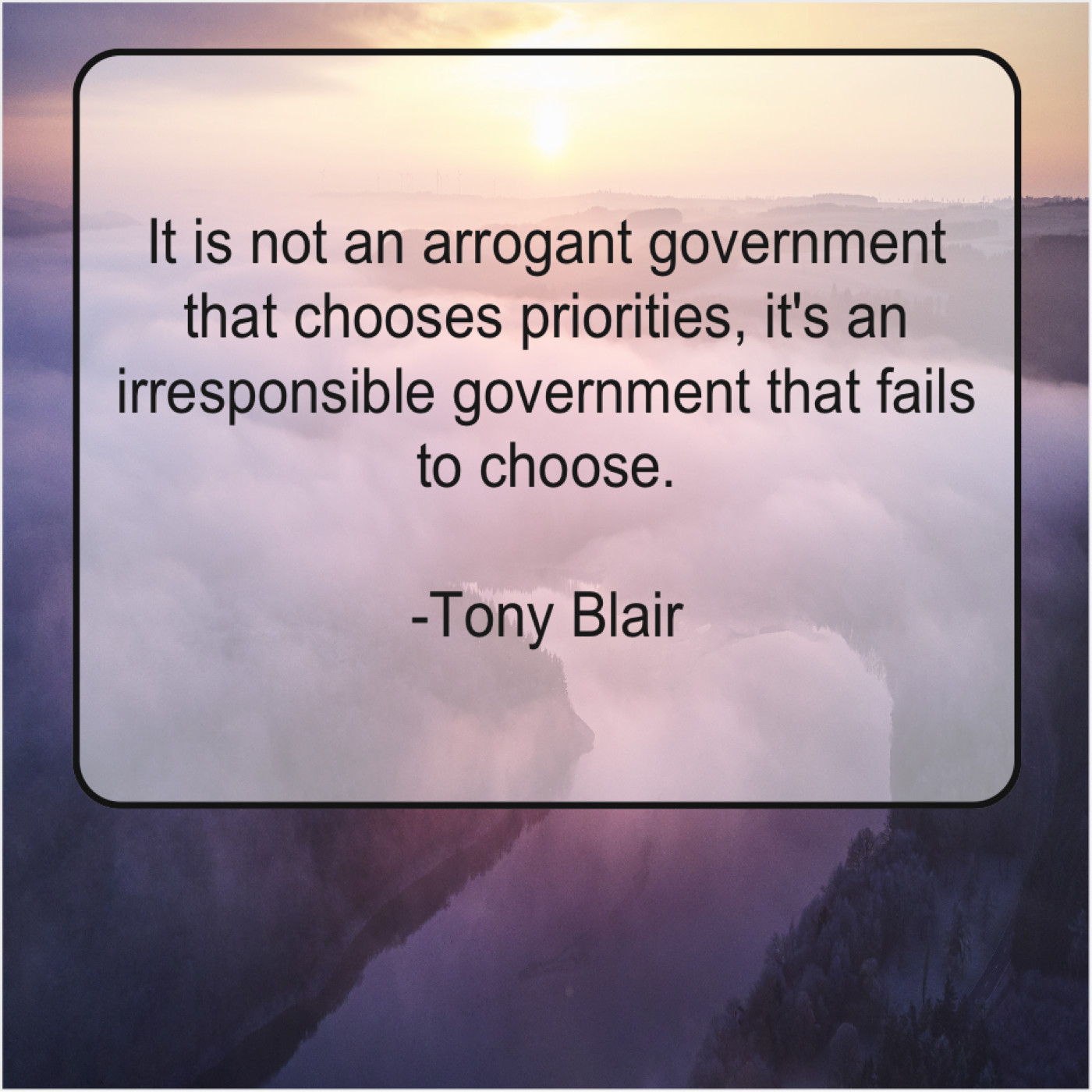 Tony Blair Tony Blair – It is not an arrogant… October 21, 2019 admin “It is not an arrogant government that chooses priorities, it’s an irresponsible government that fails to choose.”-Tony Blair