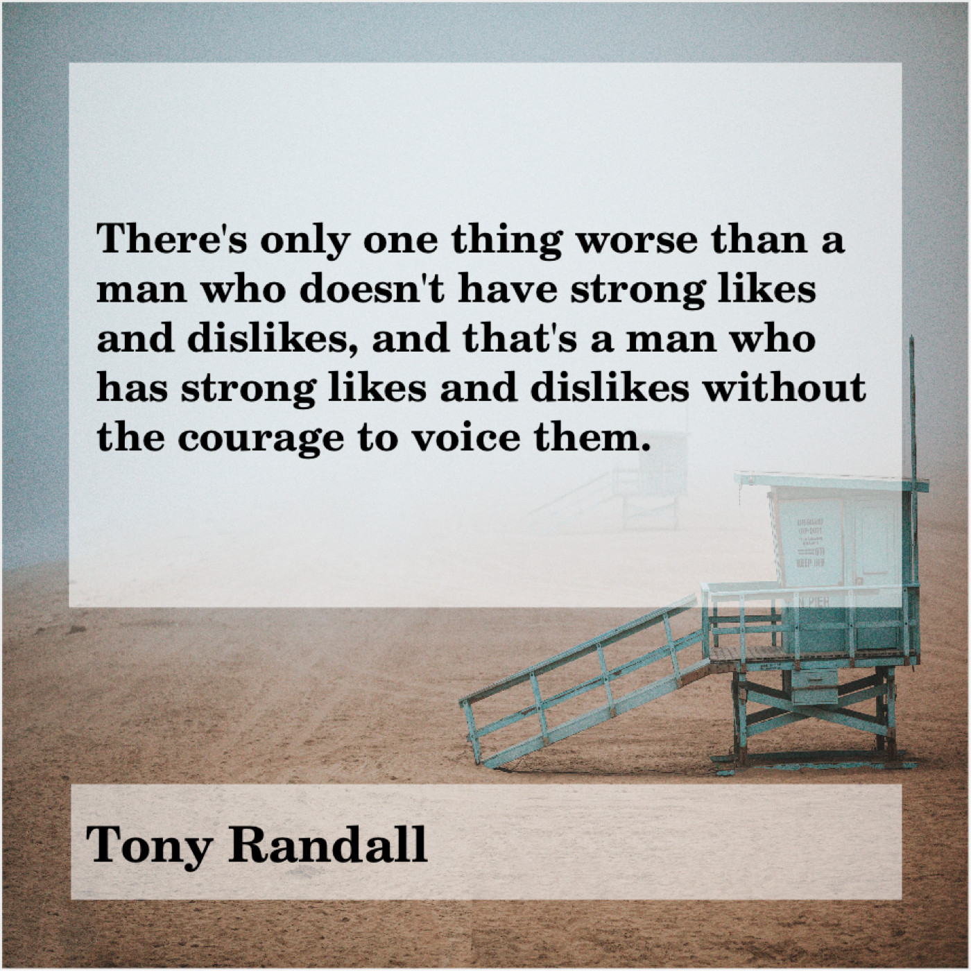 “There’s only one thing worse than a man who doesn’t have strong likes and dislikes, and that’s a man who has strong likes and dislikes without the courage to voice them.”