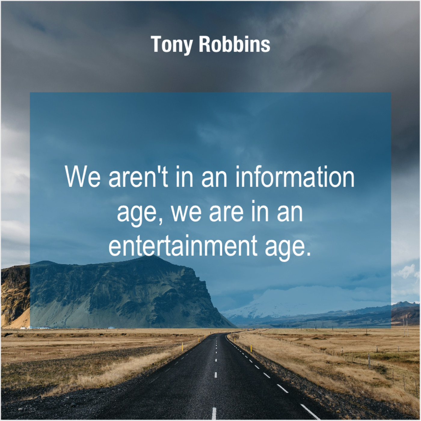 Tony Robbins Tony Robbins – We aren’t in an information… March 20, 2019 admin “We aren’t in an information age, we are in an entertainment age.”-Tony Robbins