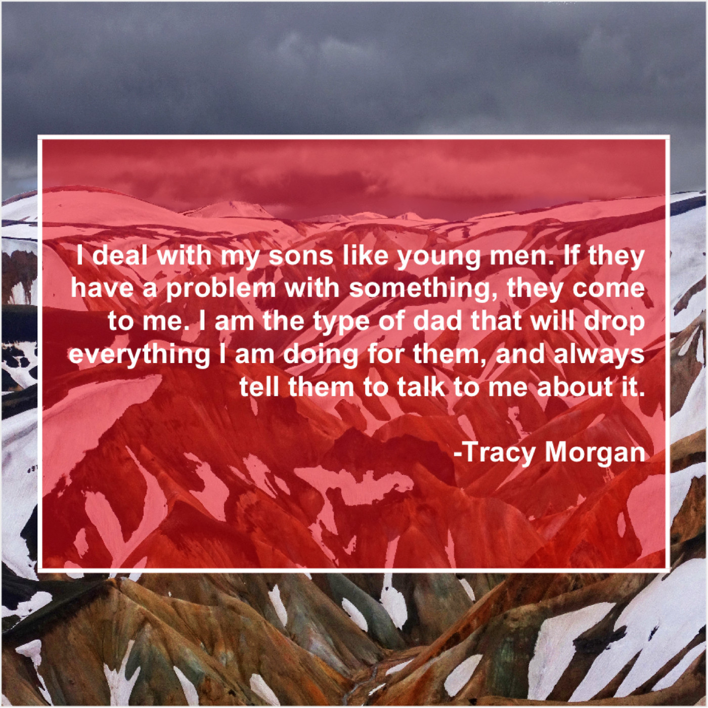 Tracy Morgan Tracy Morgan – I deal with my sons… September 5, 2019 admin “I deal with my sons like young men. If they have a problem with something, they come to me. I am the type of dad that will drop everything I am doing for them, and always tell them to talk to me about it.”-Tracy Morgan