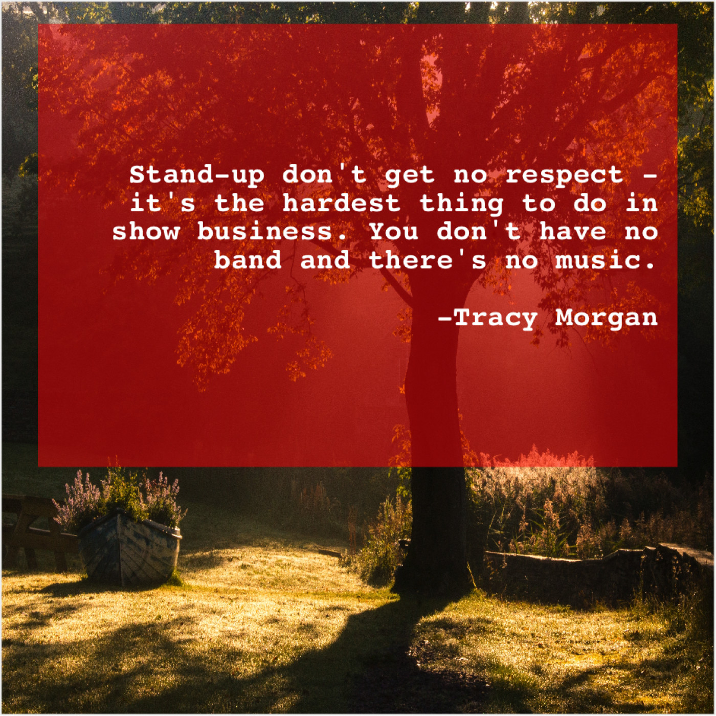 Tracy Morgan Tracy Morgan – Stand-up don’t get no… May 28, 2019 admin “Stand-up don’t get no respect – it’s the hardest thing to do in show business. You don’t have no band and there’s no music.”-Tracy Morgan