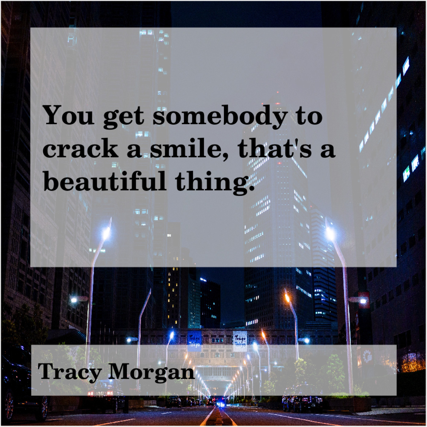 Tracy Morgan Tracy Morgan – You get somebody to crack… August 8, 2019 admin “You get somebody to crack a smile, that’s a beautiful thing.”-Tracy Morgan