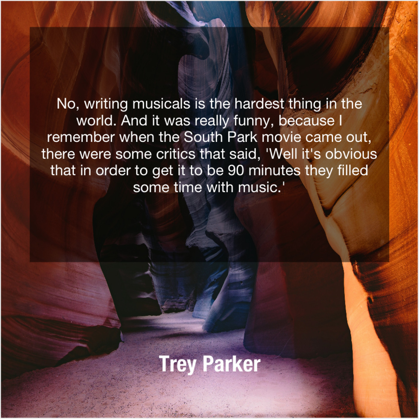 “No, writing musicals is the hardest thing in the world. And it was really funny, because I remember when the South Park movie came out, there were some critics that said, ‘Well it’s obvious that in order to get it to be 90 minutes they filled some time with music.'”