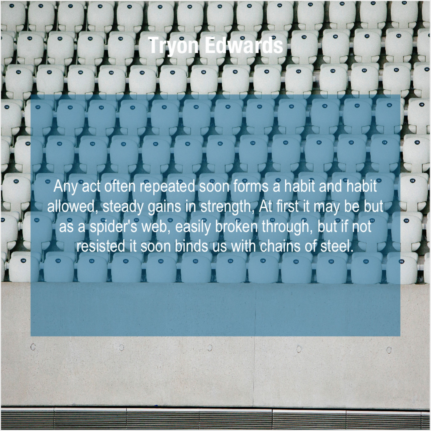 “Any act often repeated soon forms a habit and habit allowed, steady gains in strength, At first it may be but as a spider’s web, easily broken through, but if not resisted it soon binds us with chains of steel.”