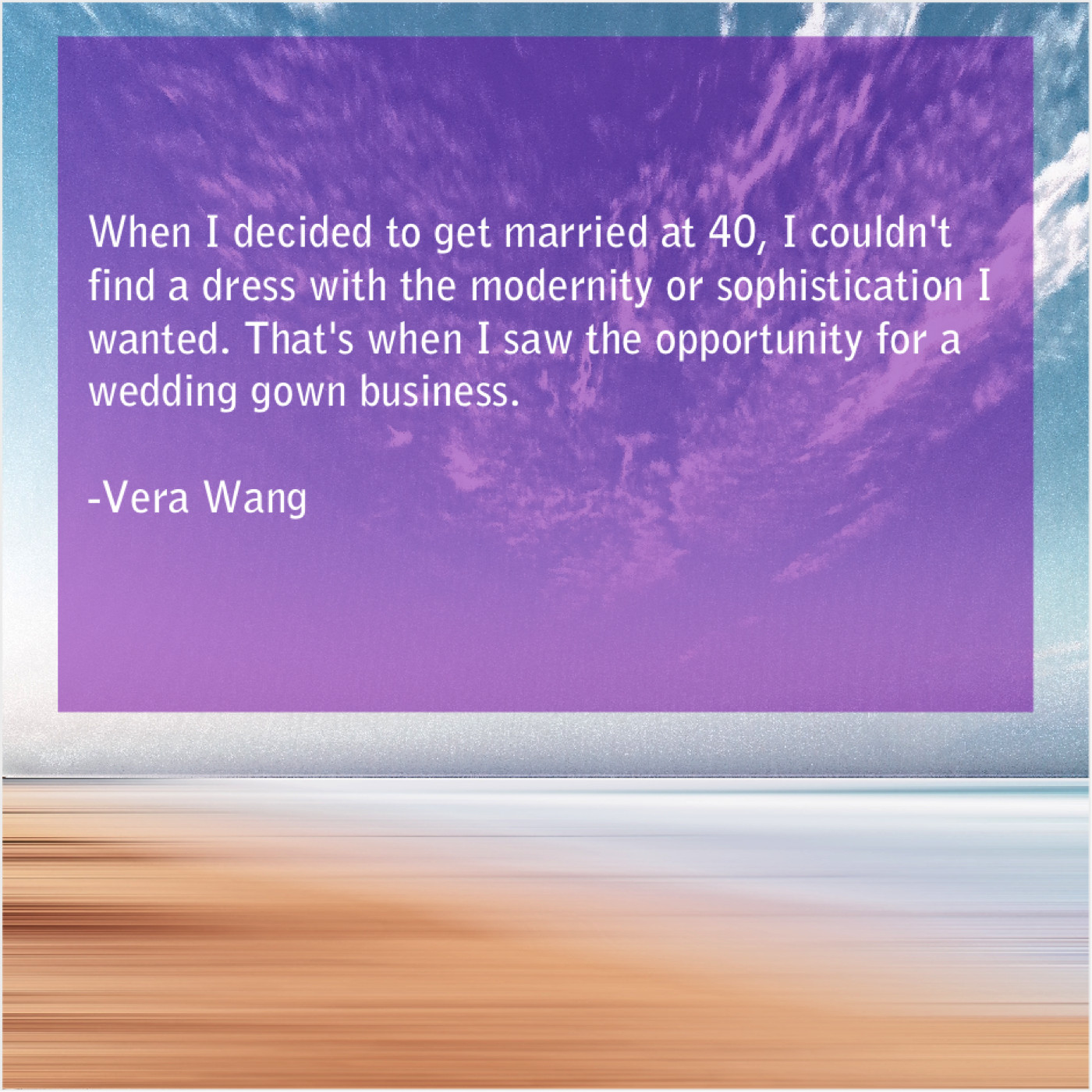 Vera Wang Vera Wang – When I decided to get… July 29, 2019 admin “When I decided to get married at 40, I couldn’t find a dress with the modernity or sophistication I wanted. That’s when I saw the opportunity for a wedding gown business.”-Vera Wang