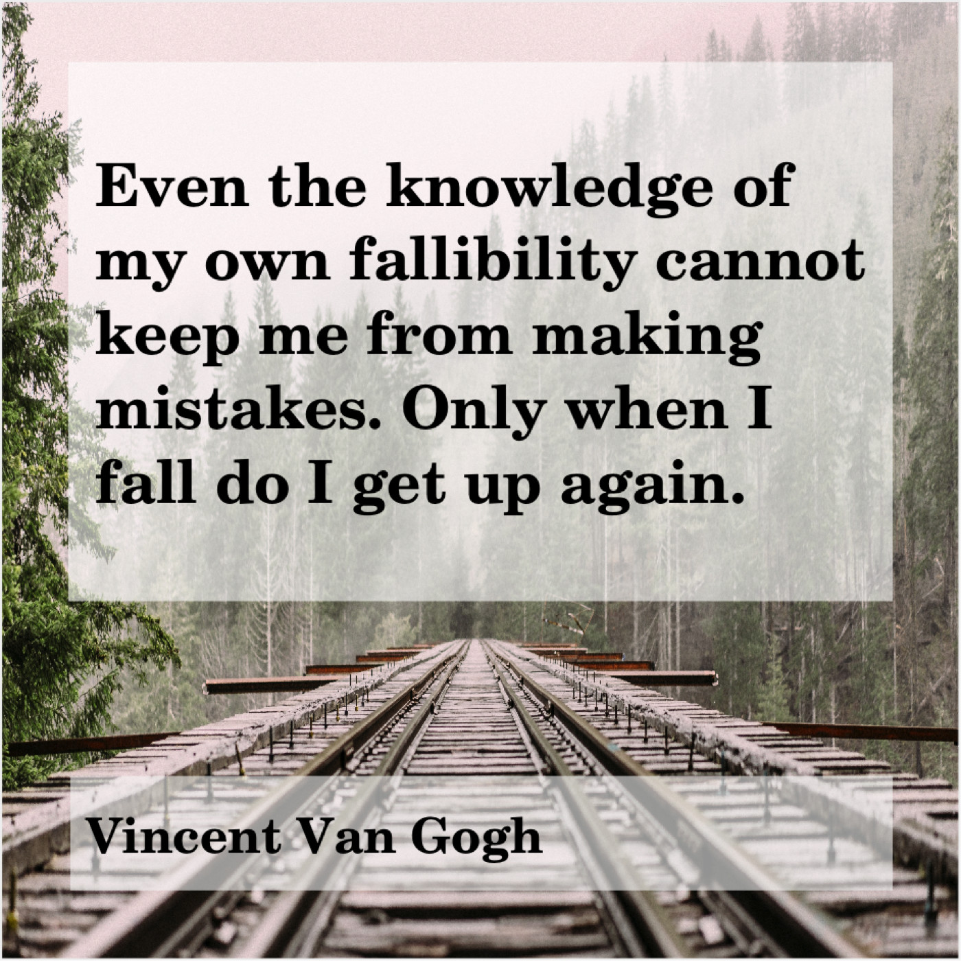 Vincent Van Gogh Vincent Van Gogh – Even the knowledge of my… September 9, 2019 admin “Even the knowledge of my own fallibility cannot keep me from making mistakes. Only when I fall do I get up again.”-Vincent Van Gogh