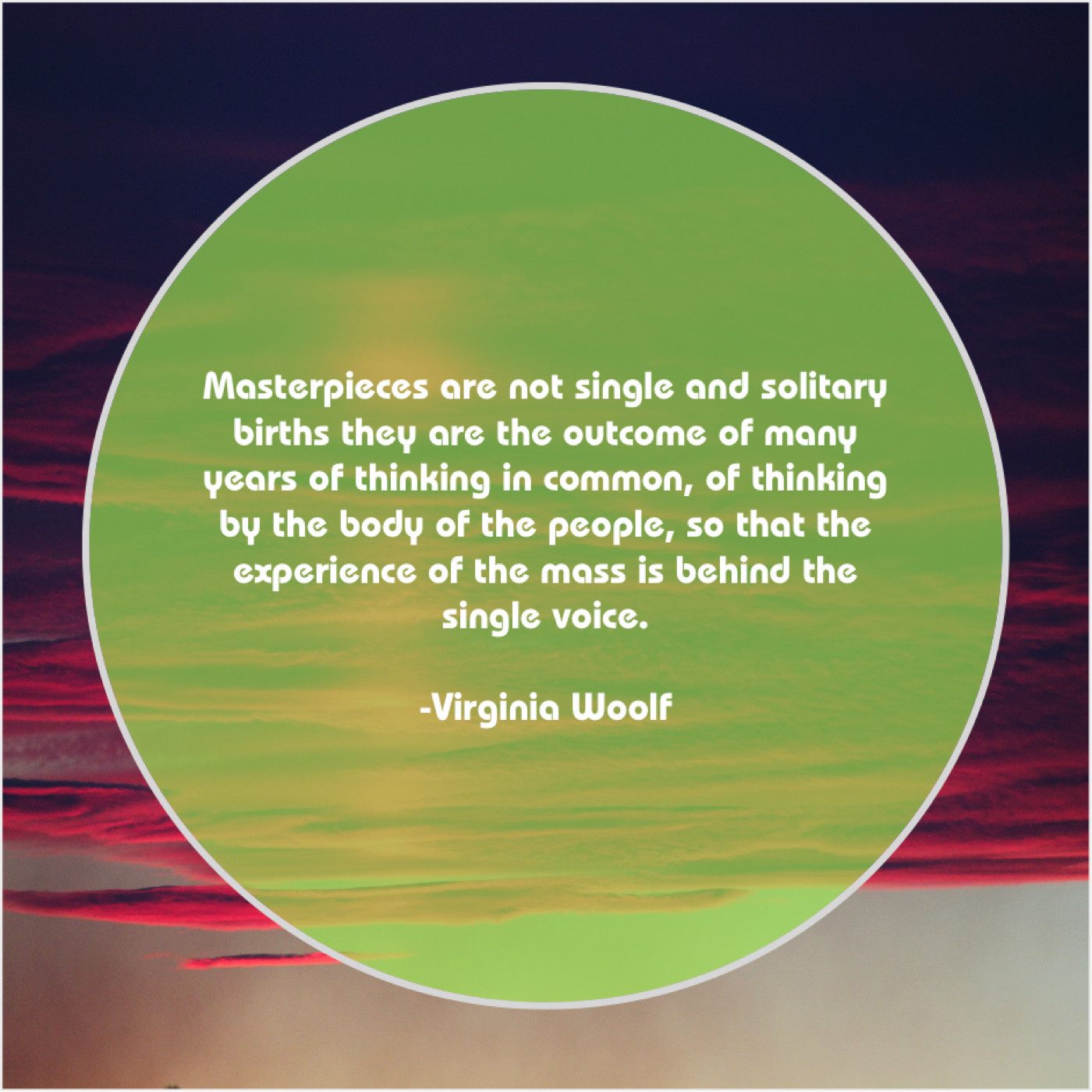 Virginia Woolf Virginia Woolf – Masterpieces are not single and… February 22, 2019 admin “Masterpieces are not single and solitary births they are the outcome of many years of thinking in common, of thinking by the body of the people, so that the experience of the mass is behind the single voice.”-Virginia Woolf
