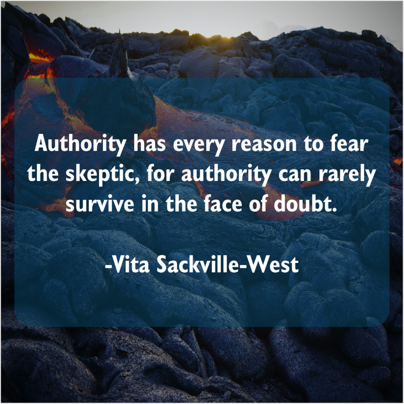 Vita Sackville-West Vita Sackville-West – Authority has every reason to… September 12, 2019 admin “Authority has every reason to fear the skeptic, for authority can rarely survive in the face of doubt.”-Vita Sackville-West