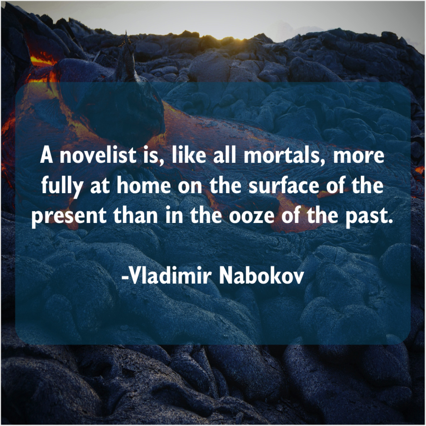 Vladimir Nabokov Vladimir Nabokov – A novelist is, like all… July 5, 2019 admin “A novelist is, like all mortals, more fully at home on the surface of the present than in the ooze of the past.”-Vladimir Nabokov
