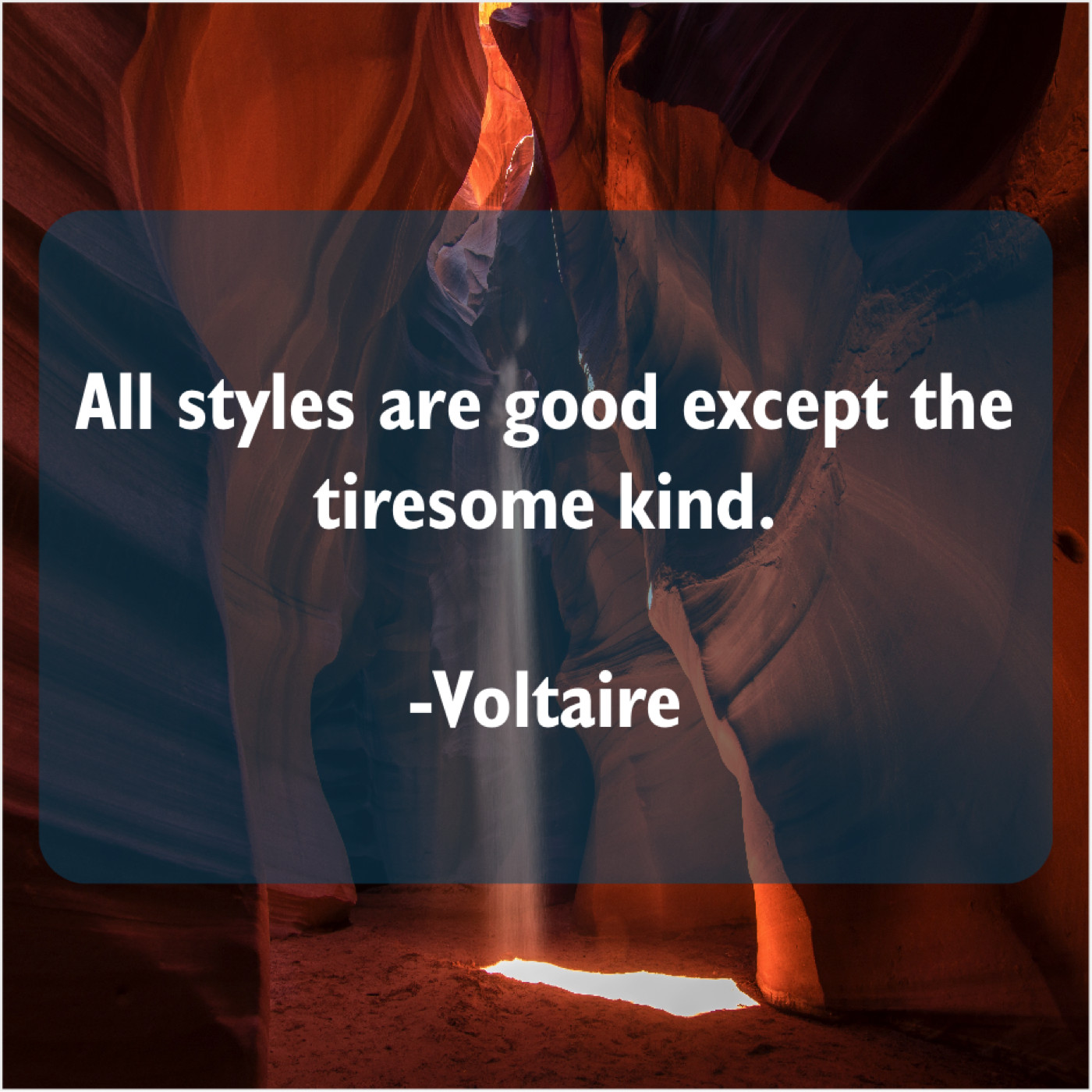 Voltaire Voltaire – All styles are good except… June 20, 2019 admin “All styles are good except the tiresome kind.”-Voltaire