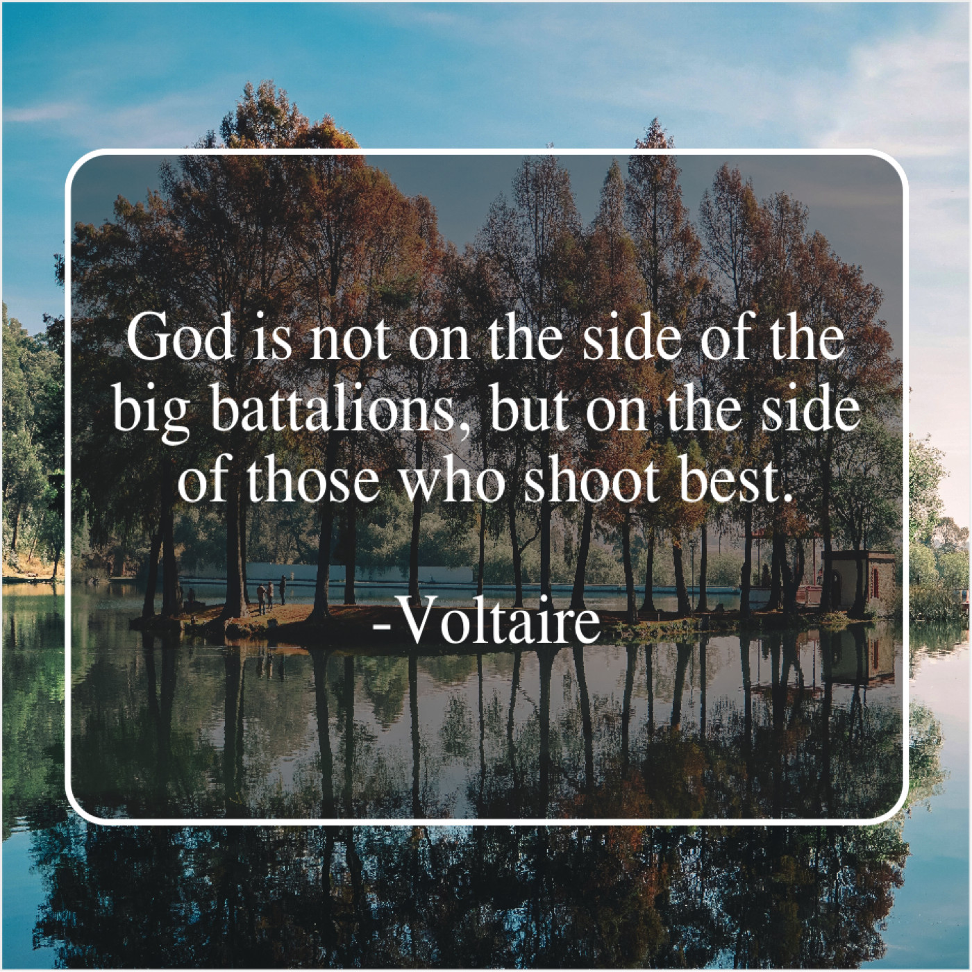 Voltaire Voltaire – God is not on the… August 2, 2019 admin “God is not on the side of the big battalions, but on the side of those who shoot best.”-Voltaire