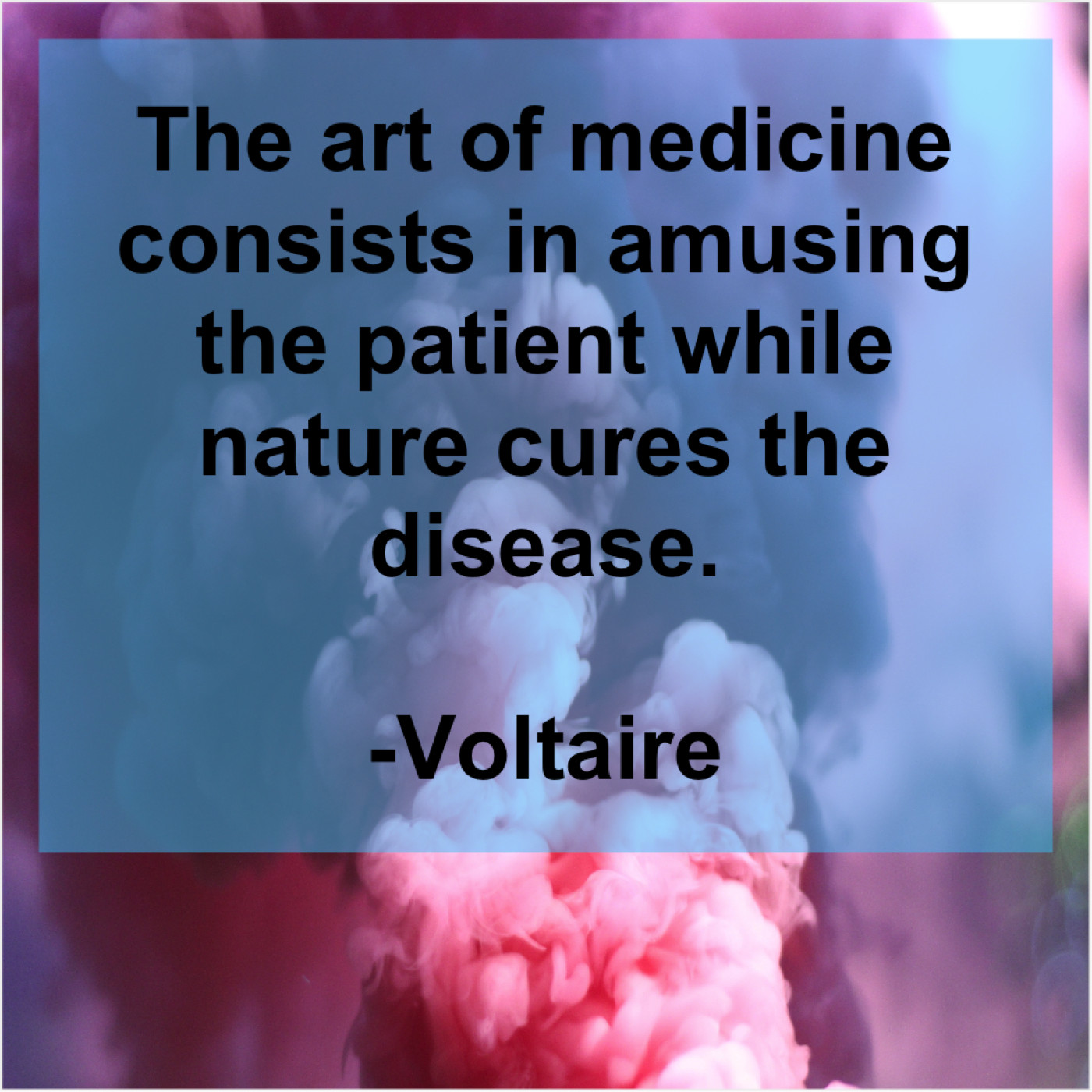 Voltaire Voltaire – The art of medicine consists… April 29, 2019 admin “The art of medicine consists in amusing the patient while nature cures the disease.”-Voltaire