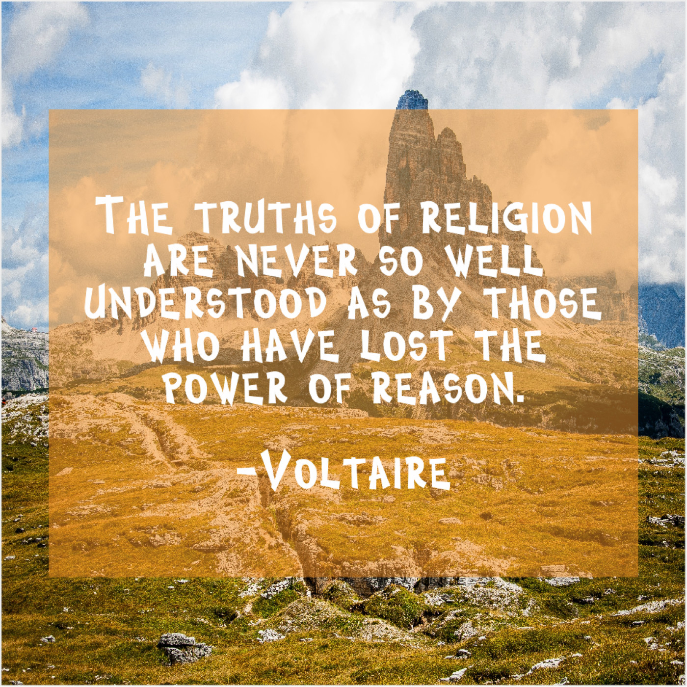Voltaire Voltaire – The truths of religion are… March 5, 2019 admin “The truths of religion are never so well understood as by those who have lost the power of reason.”-Voltaire