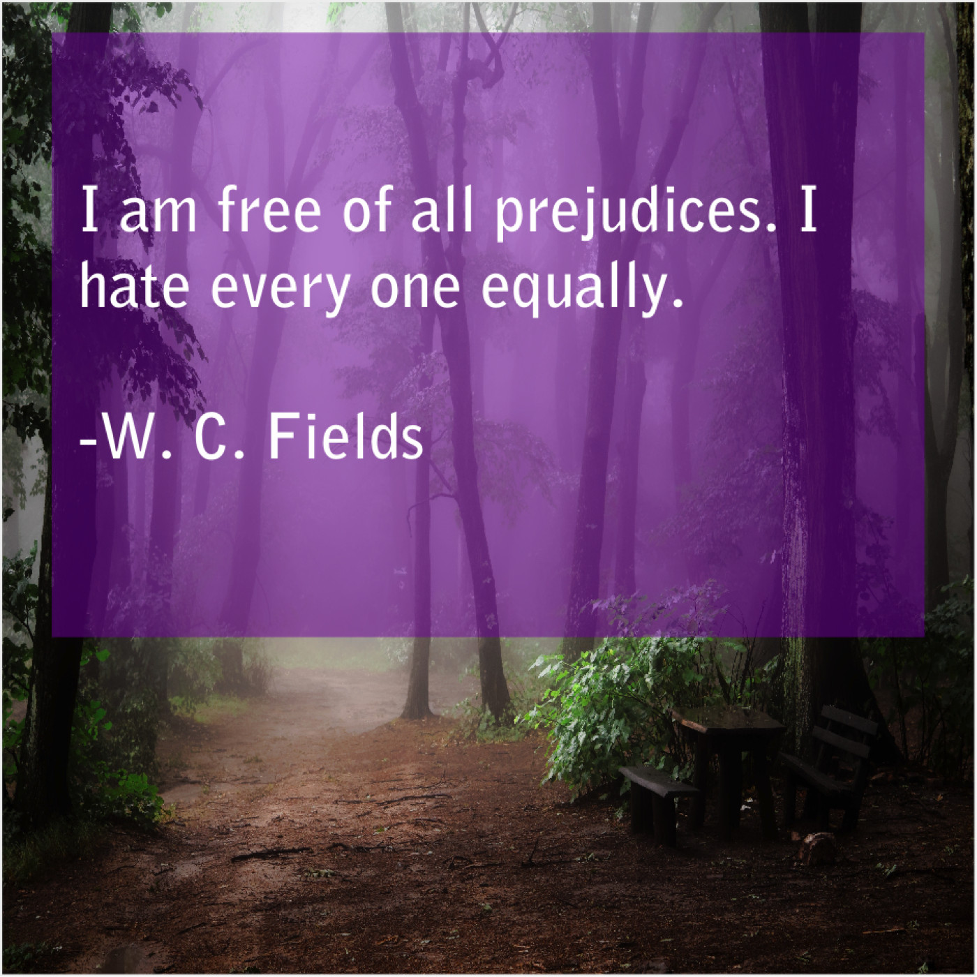 W. C. Fields W. C. Fields – I am free of all… April 21, 2019 admin “I am free of all prejudices. I hate every one equally.”-W. C. Fields