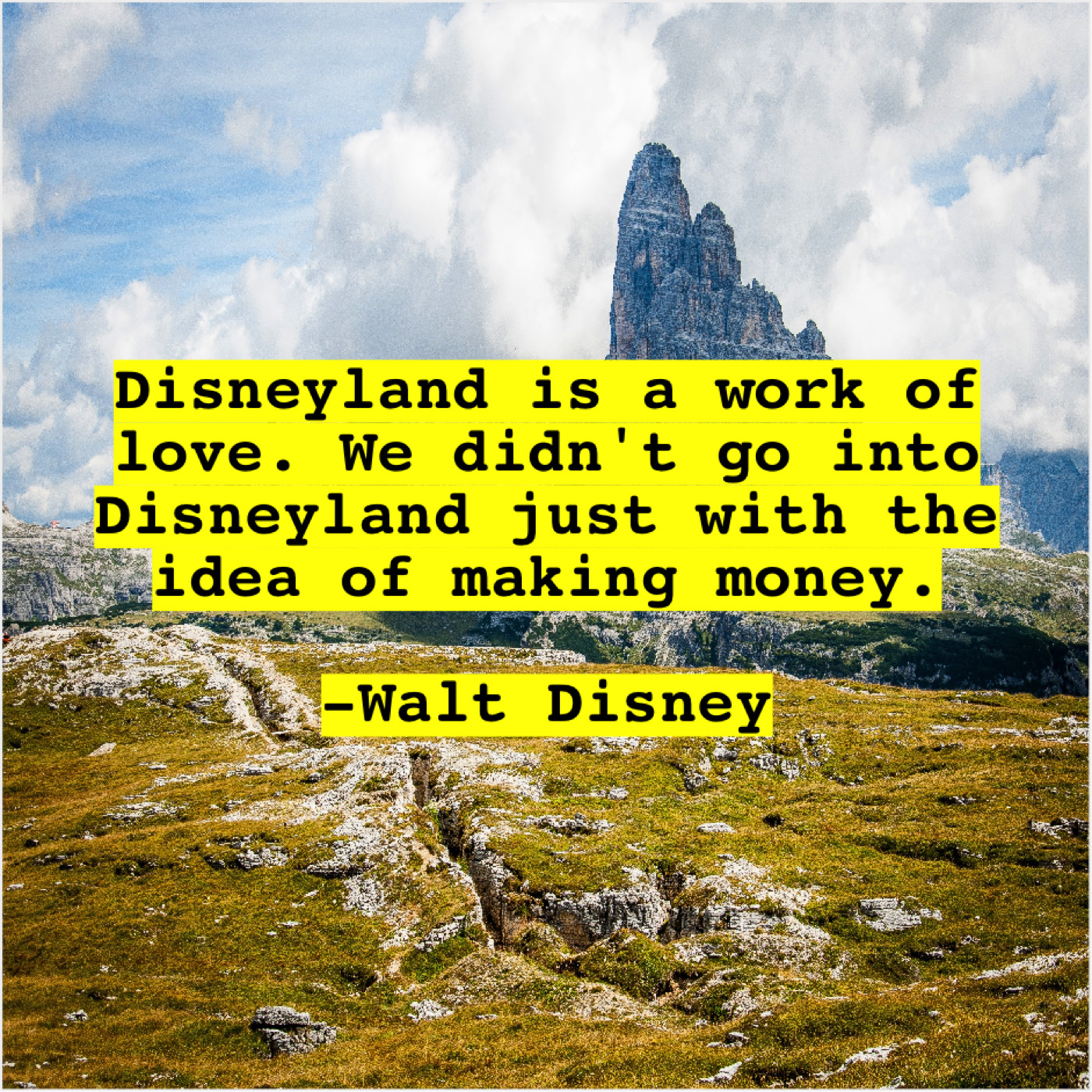 Walt Disney Walt Disney – Disneyland is a work of… August 13, 2019 admin “Disneyland is a work of love. We didn’t go into Disneyland just with the idea of making money.”-Walt Disney