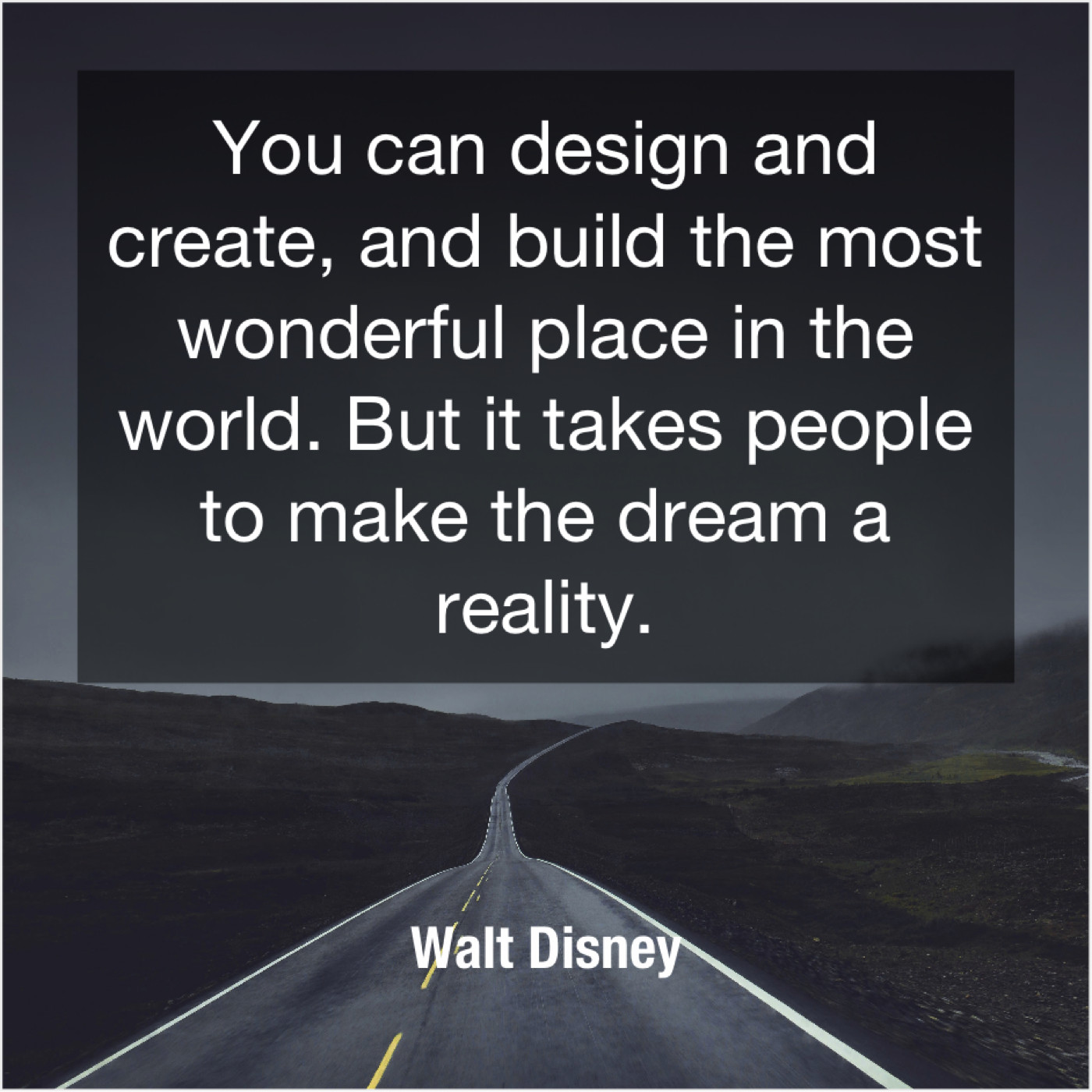 Walt Disney Walt Disney – You can design and create… June 6, 2019 admin “You can design and create, and build the most wonderful place in the world. But it takes people to make the dream a reality.”-Walt Disney
