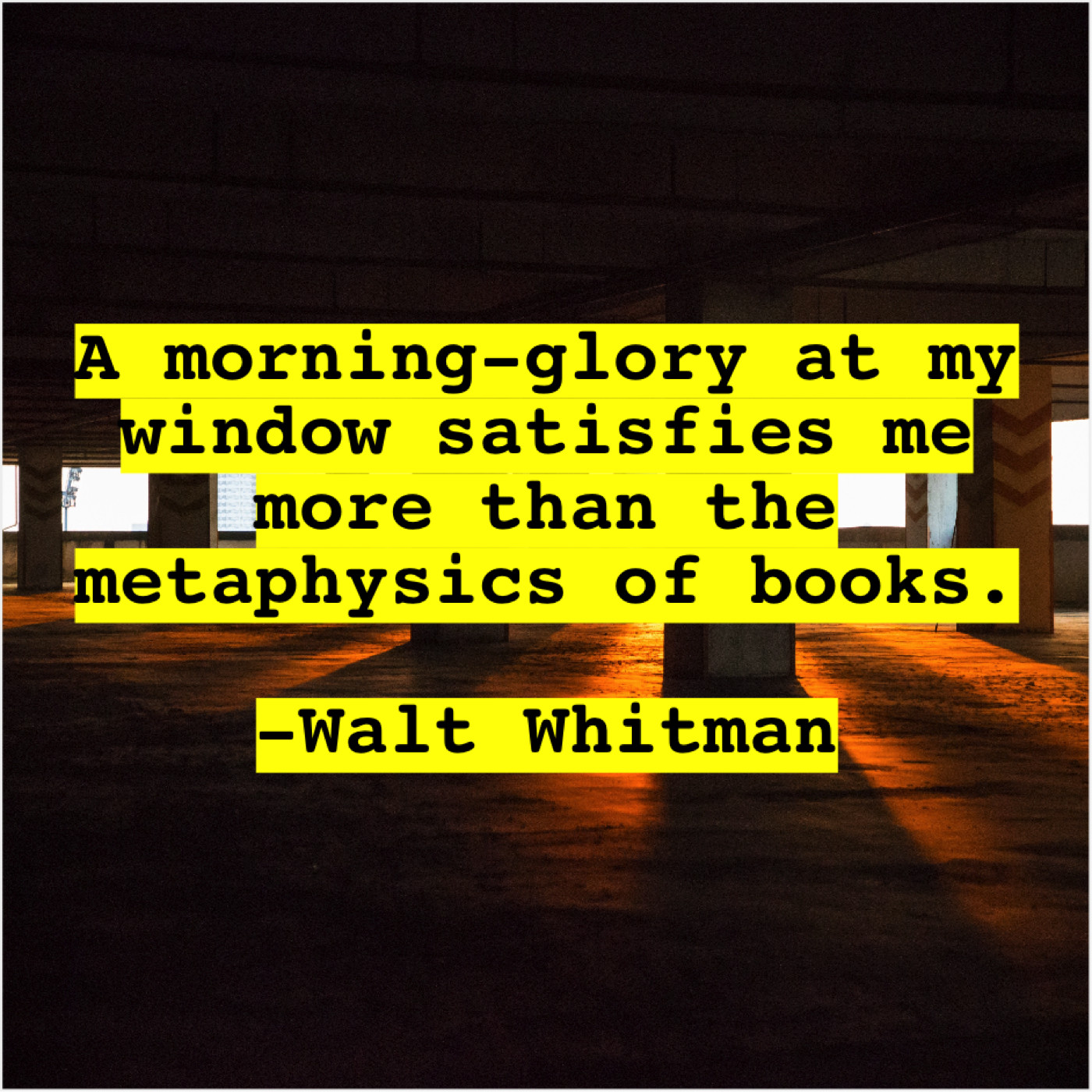 Walt Whitman Walt Whitman – A morning-glory at my… July 13, 2019 admin “A morning-glory at my window satisfies me more than the metaphysics of books.”-Walt Whitman
