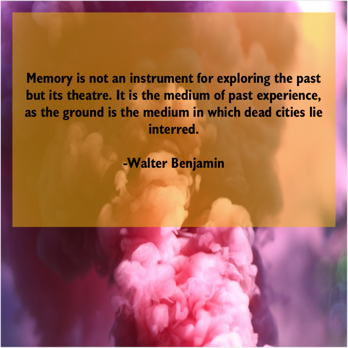 Walter Benjamin Walter Benjamin – Memory is not an instrument… December 6, 2018 admin “Memory is not an instrument for exploring the past but its theatre. It is the medium of past experience, as the ground is the medium in which dead cities lie interred.”-Walter Benjamin