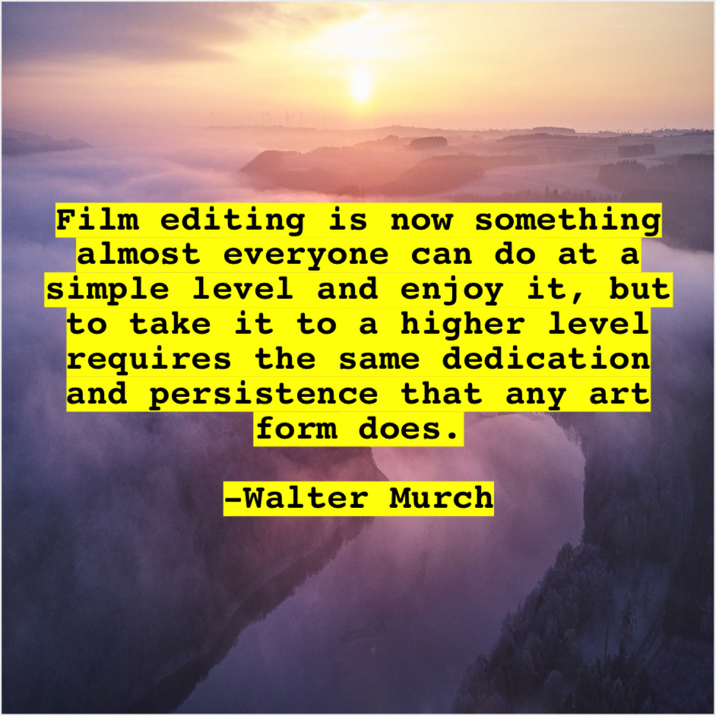 Walter Murch Walter Murch – Film editing is now something… September 11, 2019 admin “Film editing is now something almost everyone can do at a simple level and enjoy it, but to take it to a higher level requires the same dedication and persistence that any art form does.”-Walter Murch