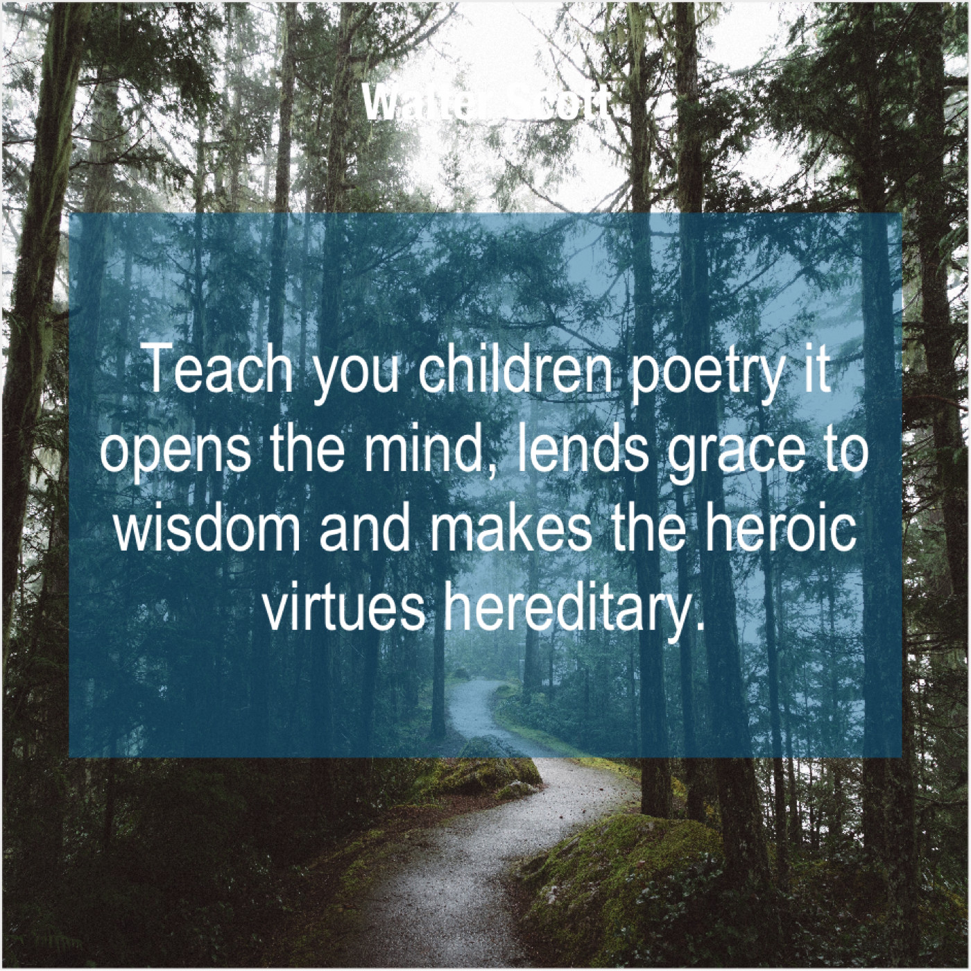 Walter Scott Walter Scott – Teach you children poetry it… July 19, 2019 admin “Teach you children poetry it opens the mind, lends grace to wisdom and makes the heroic virtues hereditary.”-Walter Scott
