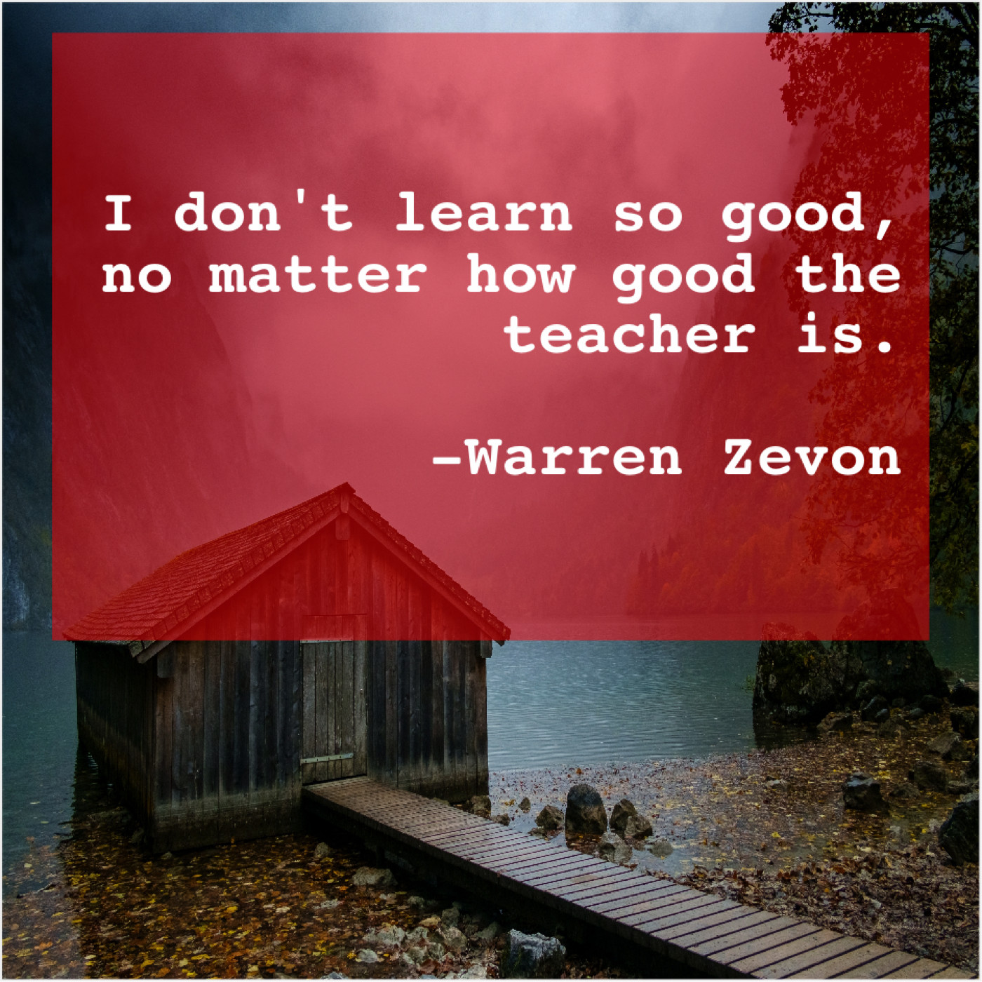 Warren Zevon Warren Zevon – I don’t learn so good… March 16, 2019 admin “I don’t learn so good, no matter how good the teacher is.”-Warren Zevon