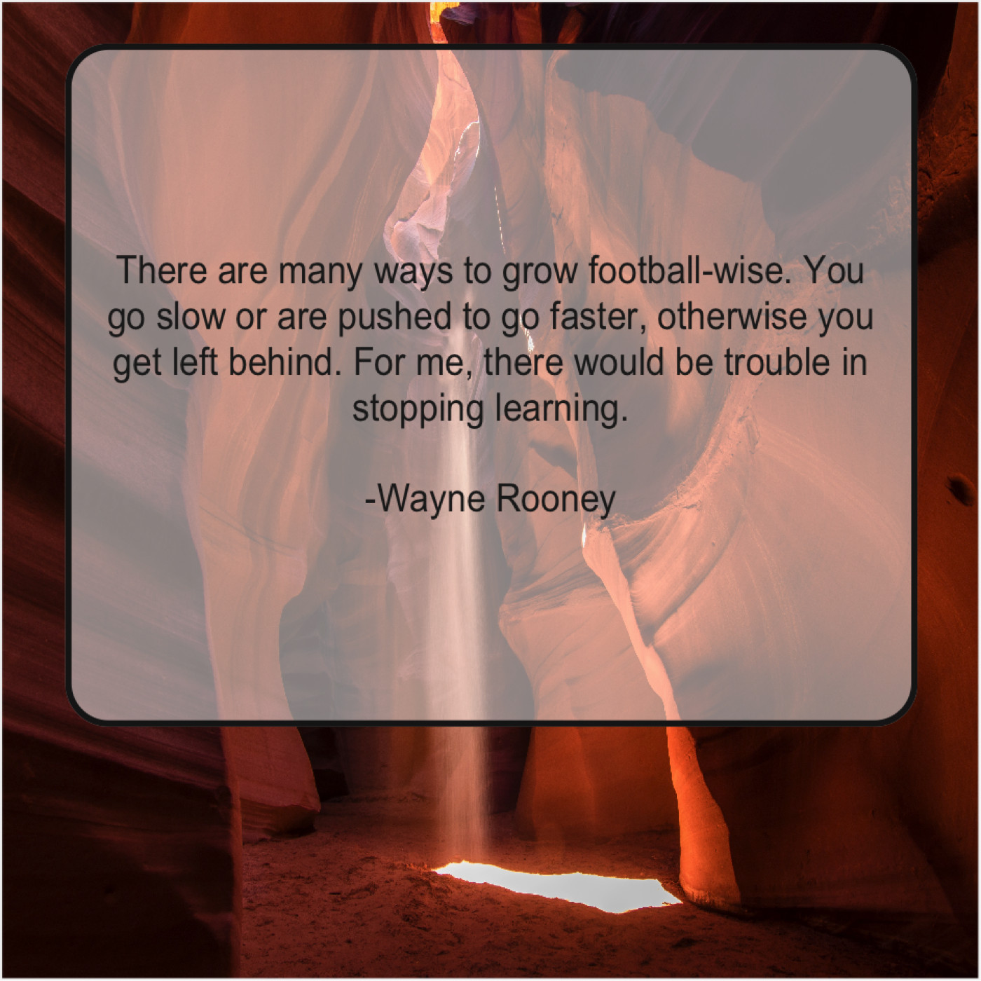 Wayne Rooney Wayne Rooney – There are many ways to… August 27, 2019 admin “There are many ways to grow football-wise. You go slow or are pushed to go faster, otherwise you get left behind. For me, there would be trouble in stopping learning.”-Wayne Rooney