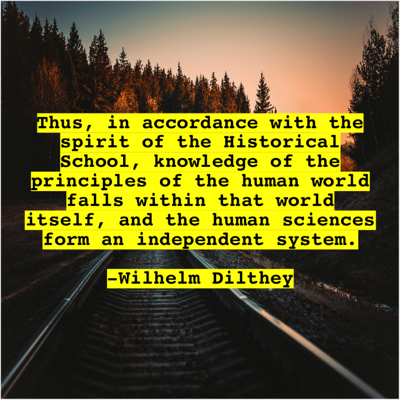 Wilhelm Dilthey Wilhelm Dilthey – Thus, in accordance with the… December 22, 2018 admin “Thus, in accordance with the spirit of the Historical School, knowledge of the principles of the human world falls within that world itself, and the human sciences form an independent system.”-Wilhelm Dilthey