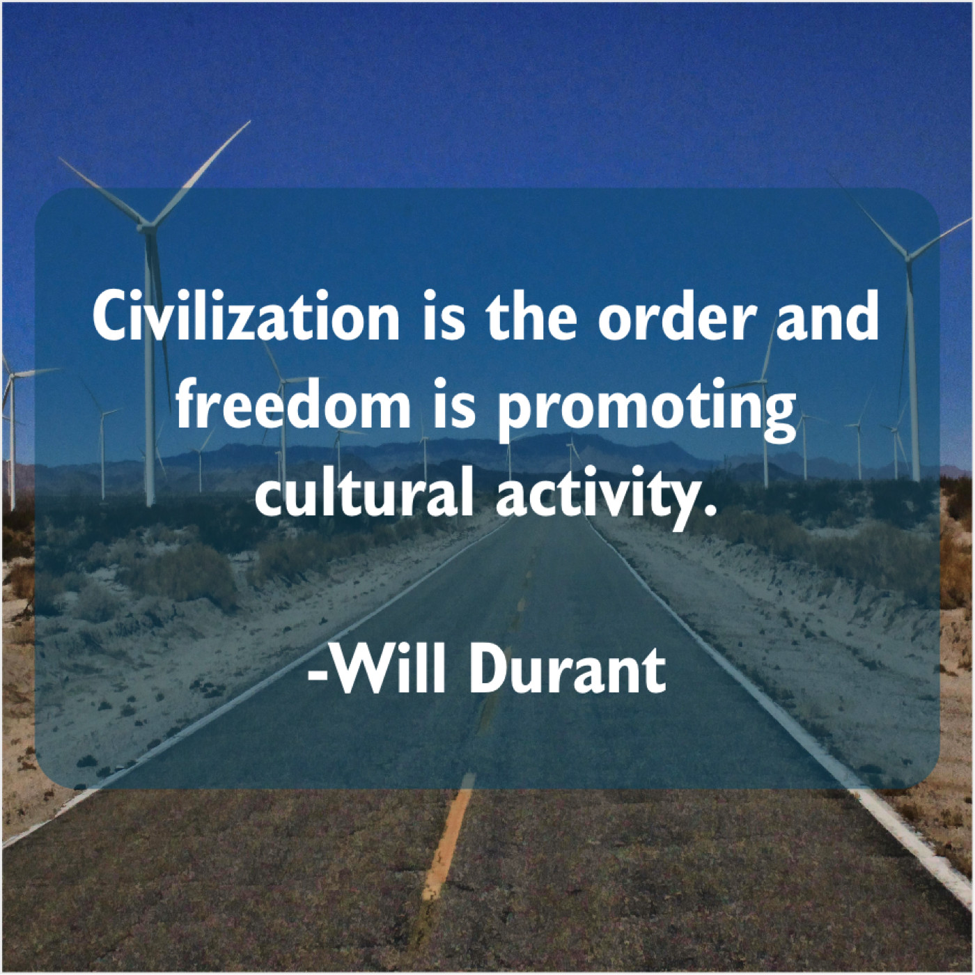 Will Durant Will Durant – Civilization is the order and… April 21, 2019 admin “Civilization is the order and freedom is promoting cultural activity.”-Will Durant