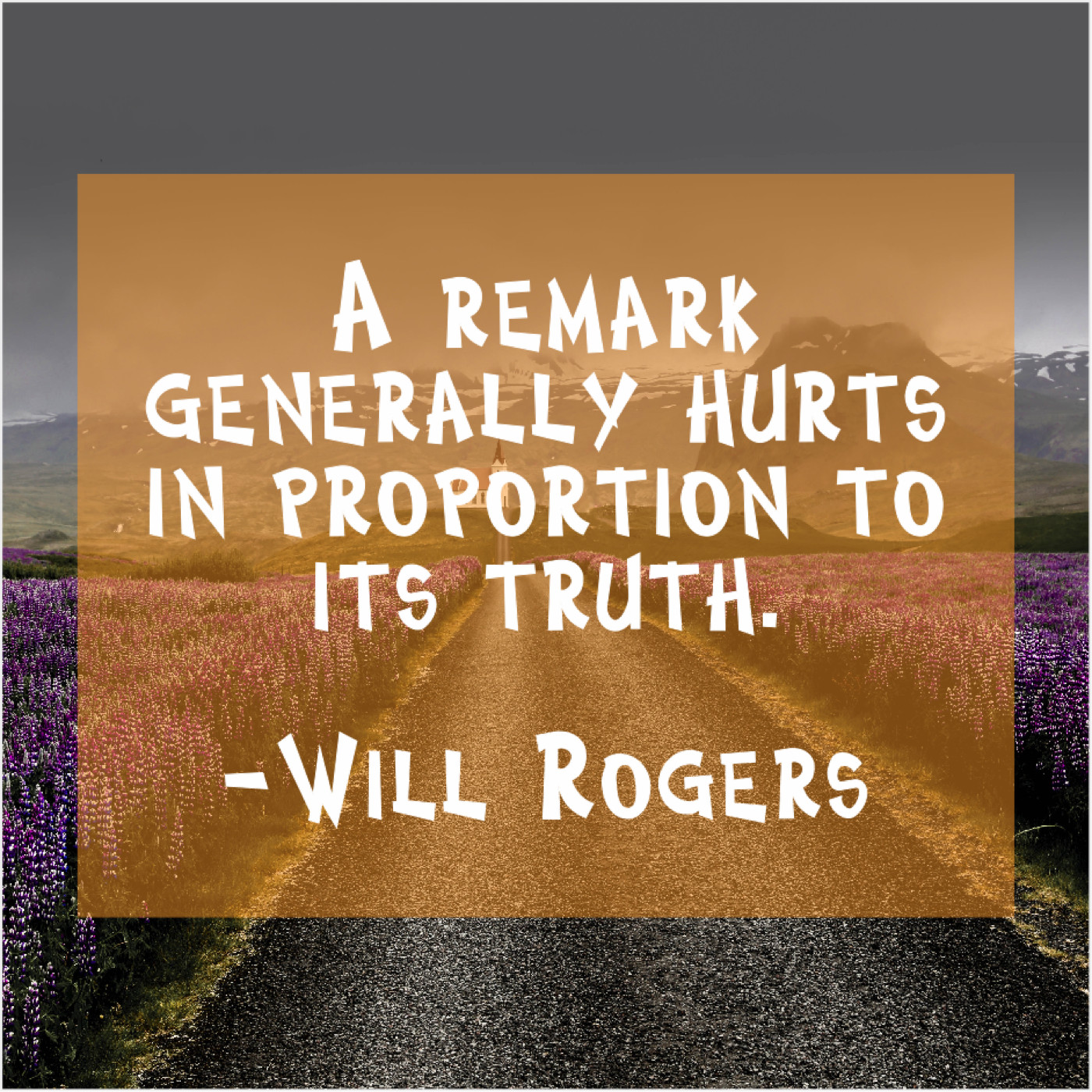 Will Rogers Will Rogers – A remark generally hurts in… April 5, 2019 admin “A remark generally hurts in proportion to its truth.”-Will Rogers