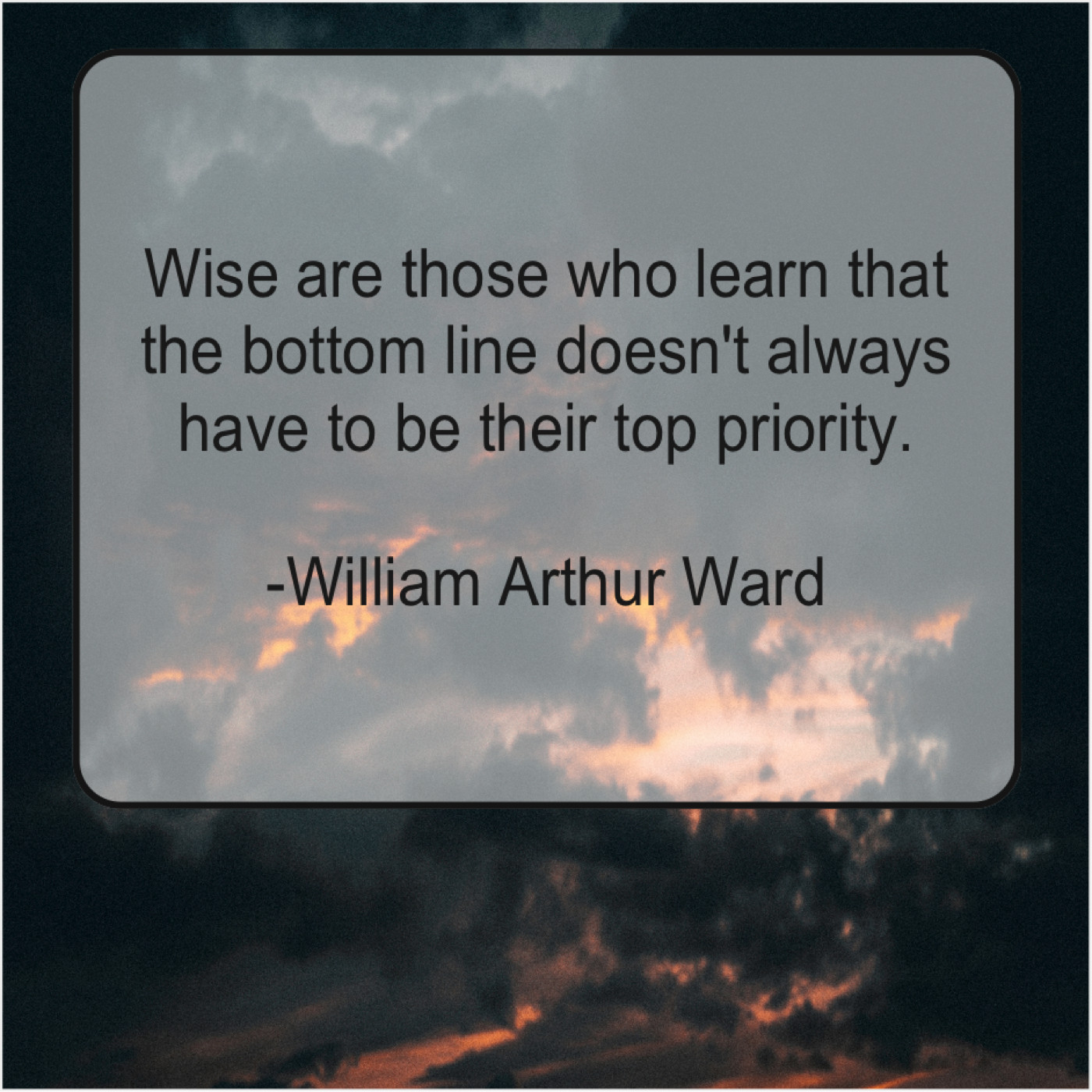 William Arthur Ward William Arthur Ward – Wise are those who learn… May 1, 2019 admin “Wise are those who learn that the bottom line doesn’t always have to be their top priority.”-William Arthur Ward