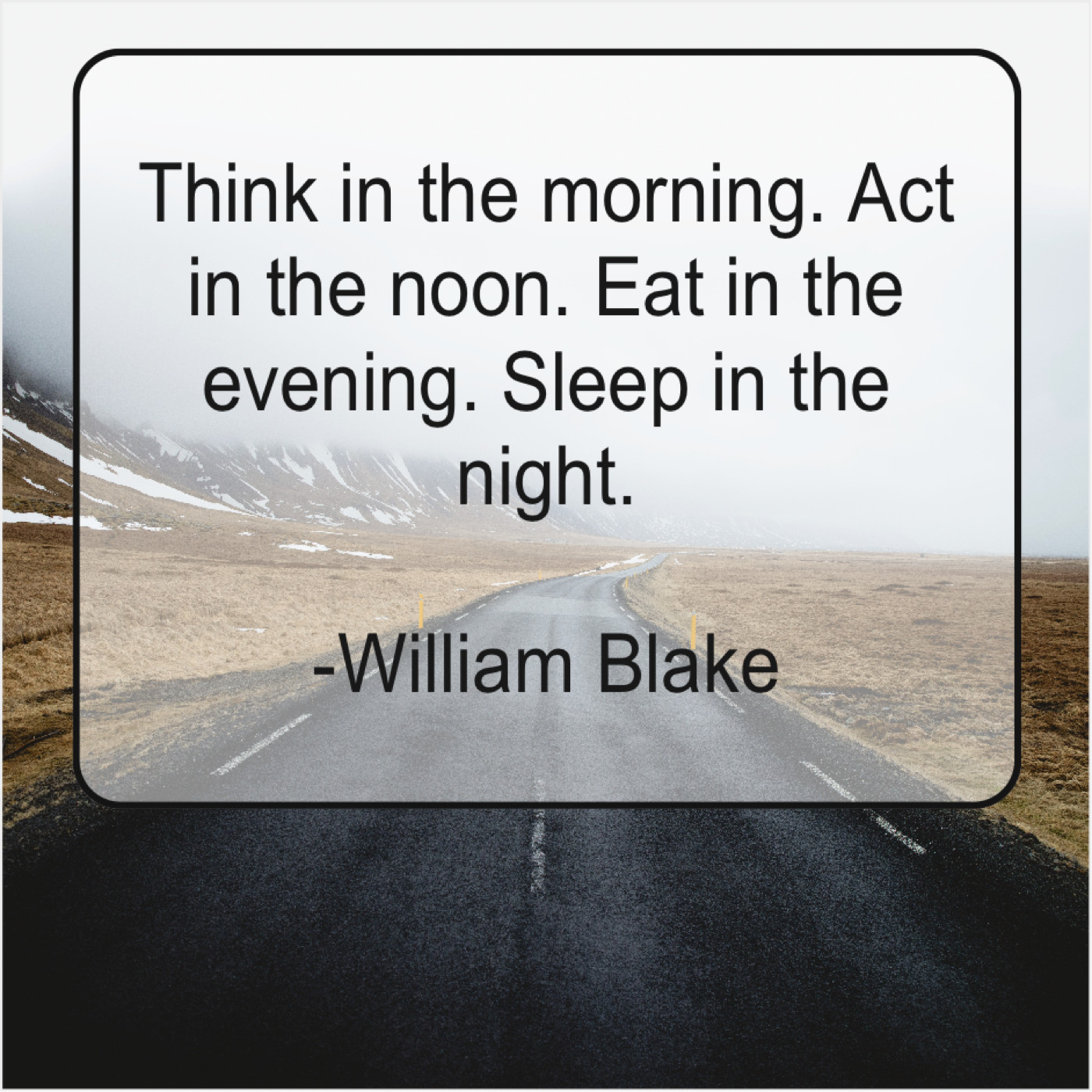 William Blake William Blake – Think in the morning. Act… August 18, 2019 admin “Think in the morning. Act in the noon. Eat in the evening. Sleep in the night.”-William Blake