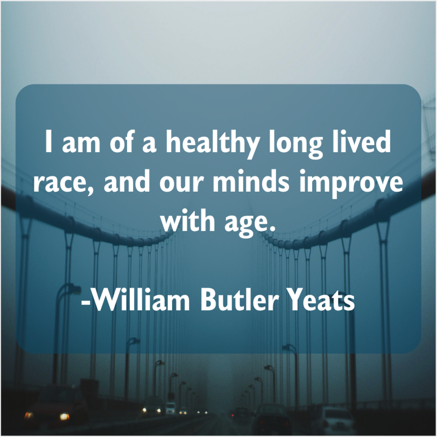 William Butler Yeats William Butler Yeats – I am of a healthy… June 26, 2019 admin “I am of a healthy long lived race, and our minds improve with age.”-William Butler Yeats