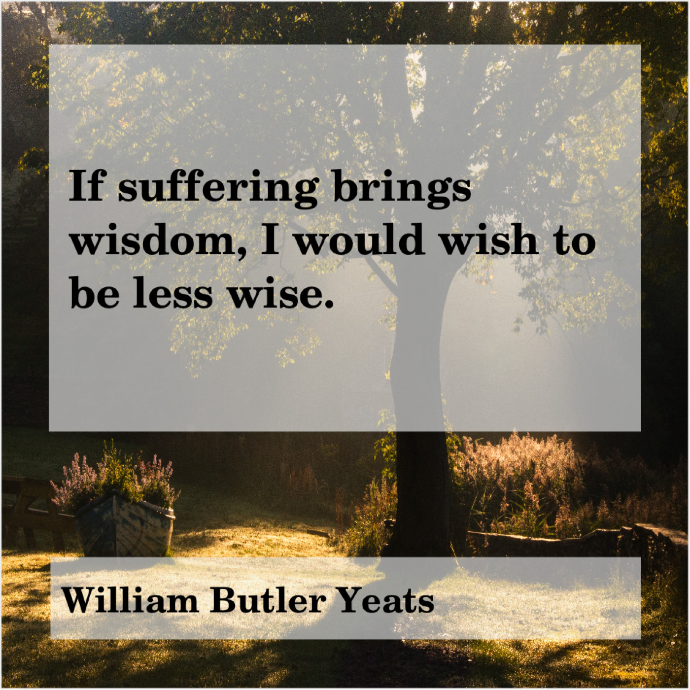 William Butler Yeats William Butler Yeats – If suffering brings wisdom, I… December 25, 2018 admin “If suffering brings wisdom, I would wish to be less wise.”-William Butler Yeats