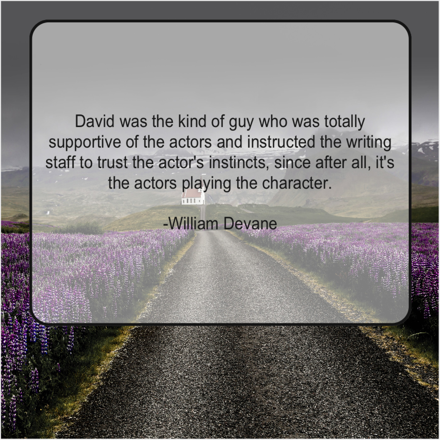 William Devane William Devane – David was the kind of… May 19, 2019 admin “David was the kind of guy who was totally supportive of the actors and instructed the writing staff to trust the actor’s instincts, since after all, it’s the actors playing the character.”-William Devane