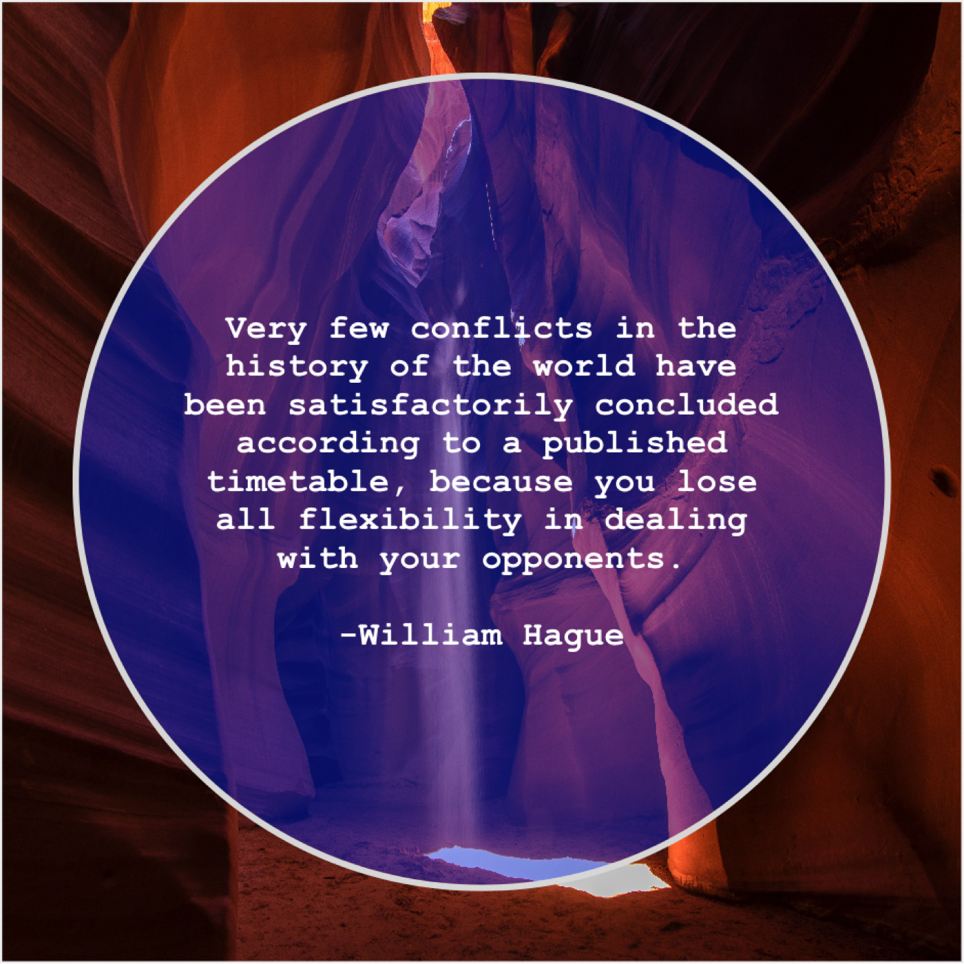 William Hague William Hague – Very few conflicts in the… April 21, 2019 admin “Very few conflicts in the history of the world have been satisfactorily concluded according to a published timetable, because you lose all flexibility in dealing with your opponents.”-William Hague
