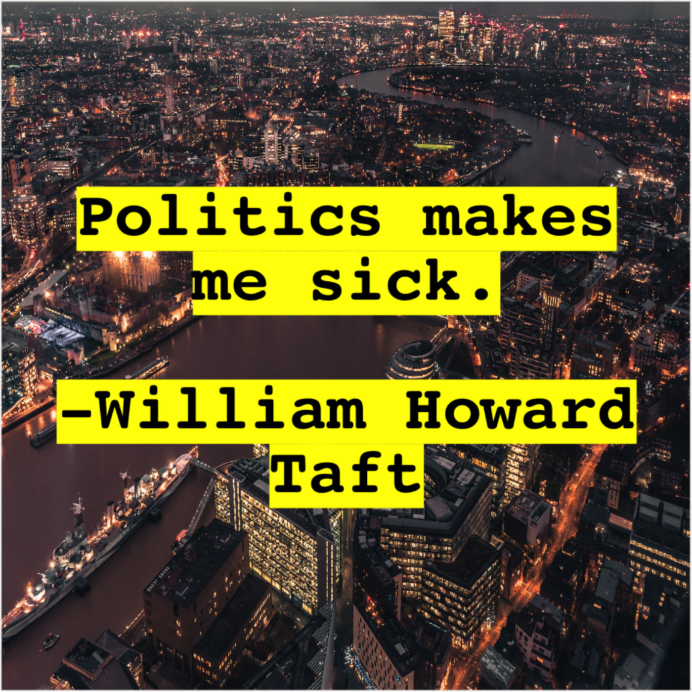 William Howard Taft William Howard Taft – Politics makes me sick… August 13, 2019 admin “Politics makes me sick.”-William Howard Taft