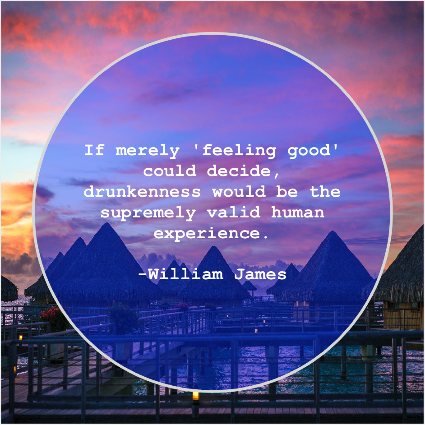 William James William James – If merely ‘feeling good’ could… March 19, 2019 admin “If merely ‘feeling good’ could decide, drunkenness would be the supremely valid human experience.”-William James
