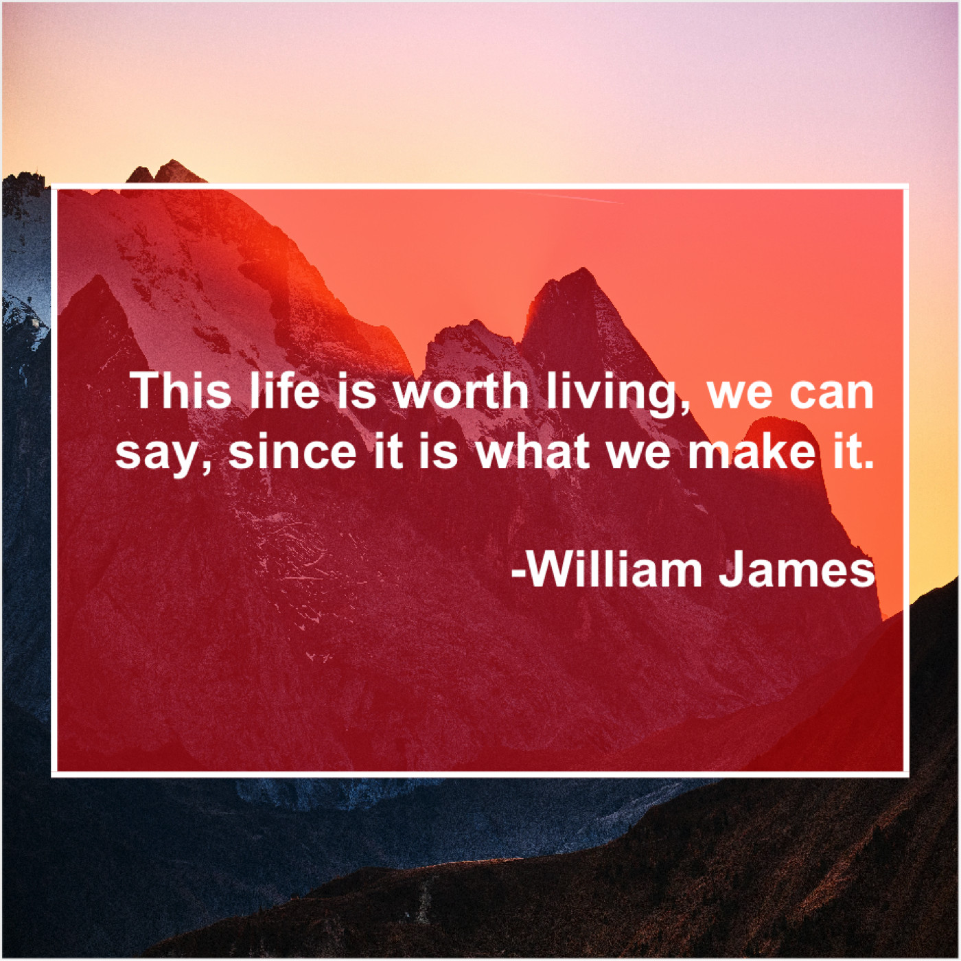 William James William James – This life is worth living… November 1, 2018 admin “This life is worth living, we can say, since it is what we make it.”-William James